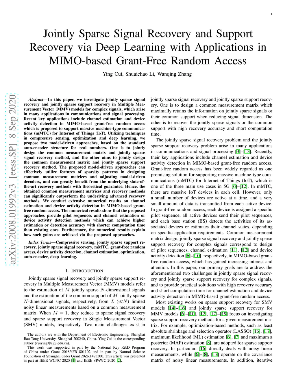 In this paper, we investigate jointly sparse signal recovery and jointly sparse support recovery in Multiple Measurement Vector (MMV) models for complex signals, which arise in many applications in communications and signal processing. Recent key applications include channel estimation and device activity detection in MIMO-based grant-free random access which is proposed to support massive machine-type communications (mMTC) for Internet of Things (IoT). Utilizing techniques in compressive sensing, optimization and deep learning, we propose two model-driven approaches, based on the standard auto-encoder structure for real numbers. One is to jointly design the common measurement matrix and jointly sparse signal recovery method, and the other aims to jointly design the common measurement matrix and jointly sparse support recovery method. The proposed model-driven approaches can effectively utilize features of sparsity patterns in designing common measurement matrices and adjusting model-driven decoders, and can greatly benefit from the underlying state-of-the-art recovery methods with theoretical guarantee. Hence, the obtained common measurement matrices and recovery methods can significantly outperform the underlying advanced recovery methods. We conduct extensive numerical results on channel estimation and device activity detection in MIMO-based grant-free random access. The numerical results show that the proposed approaches provide pilot sequences and channel estimation or device activity detection methods which can achieve higher estimation or detection accuracy with shorter computation time than existing ones. Furthermore, the numerical results explain how such gains are achieved via the proposed approaches.
