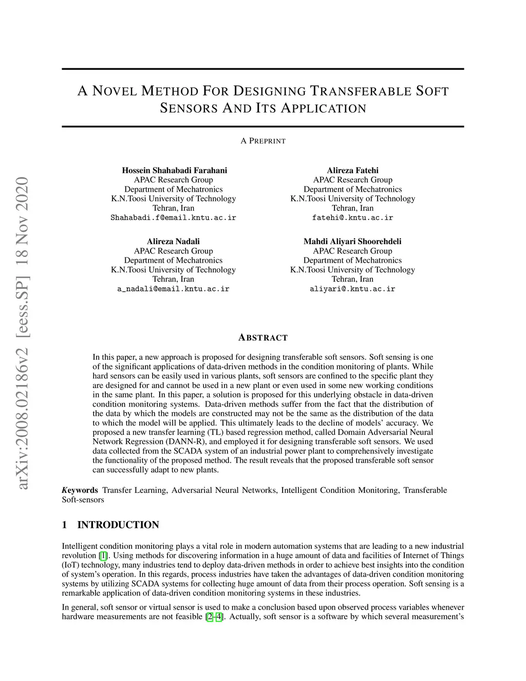 In this paper, a new approach is proposed for designing transferable soft sensors. Soft sensing is one of the significant applications of data-driven methods in the condition monitoring of plants. While hard sensors can be easily used in various plants, soft sensors are confined to the specific plant they are designed for and cannot be used in a new plant or even used in some new working conditions in the same plant. In this paper, a solution is proposed for this underlying obstacle in data-driven condition monitoring systems. Data-driven methods suffer from the fact that the distribution of the data by which the models are constructed may not be the same as the distribution of the data to which the model will be applied. This ultimately leads to the decline of models accuracy. We proposed a new transfer learning (TL) based regression method, called Domain Adversarial Neural Network Regression (DANN-R), and employed it for designing transferable soft sensors. We used data collected from the SCADA system of an industrial power plant to comprehensively investigate the functionality of the proposed method. The result reveals that the proposed transferable soft sensor can successfully adapt to new plants.