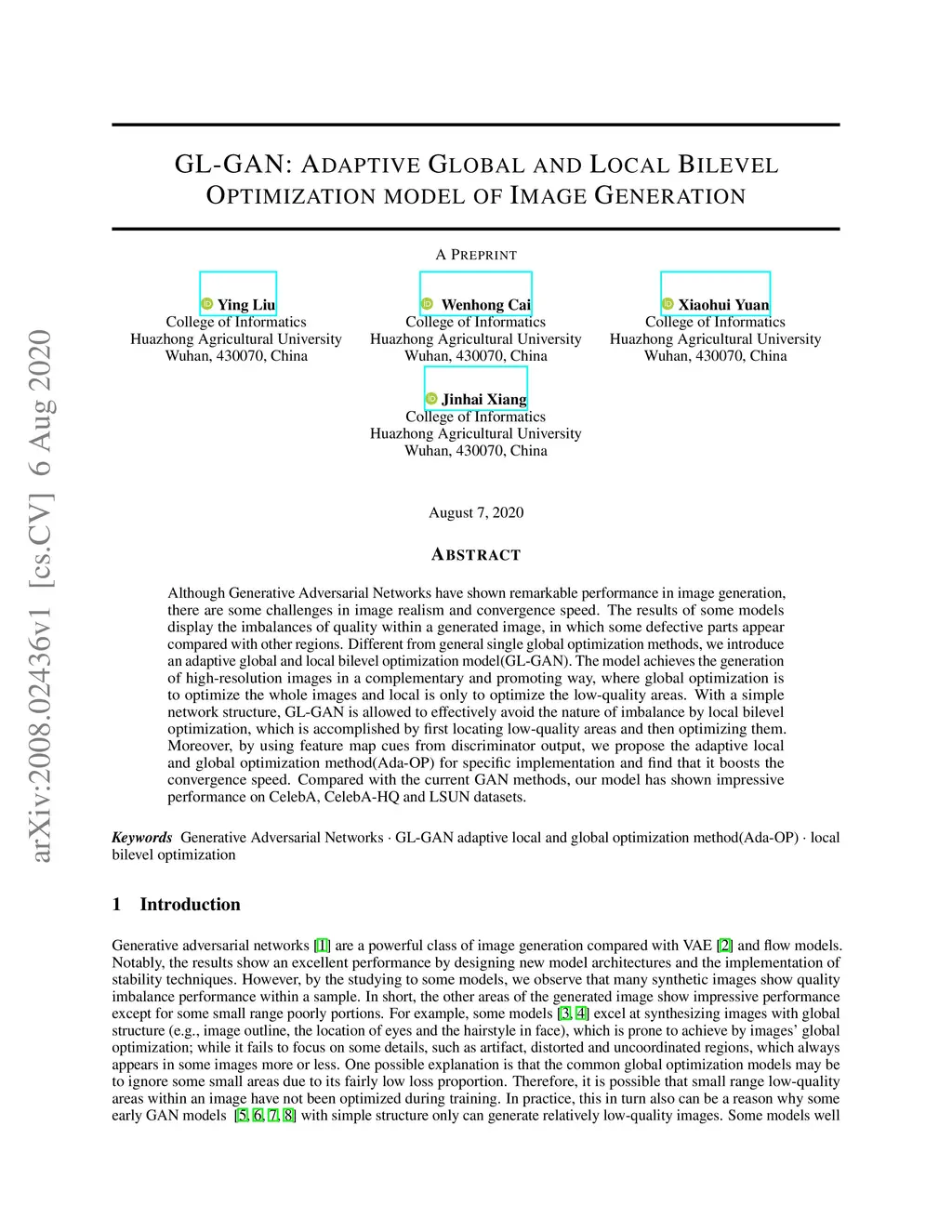 GL-GAN: Adaptive Global and Local Bilevel Optimization model of Image
