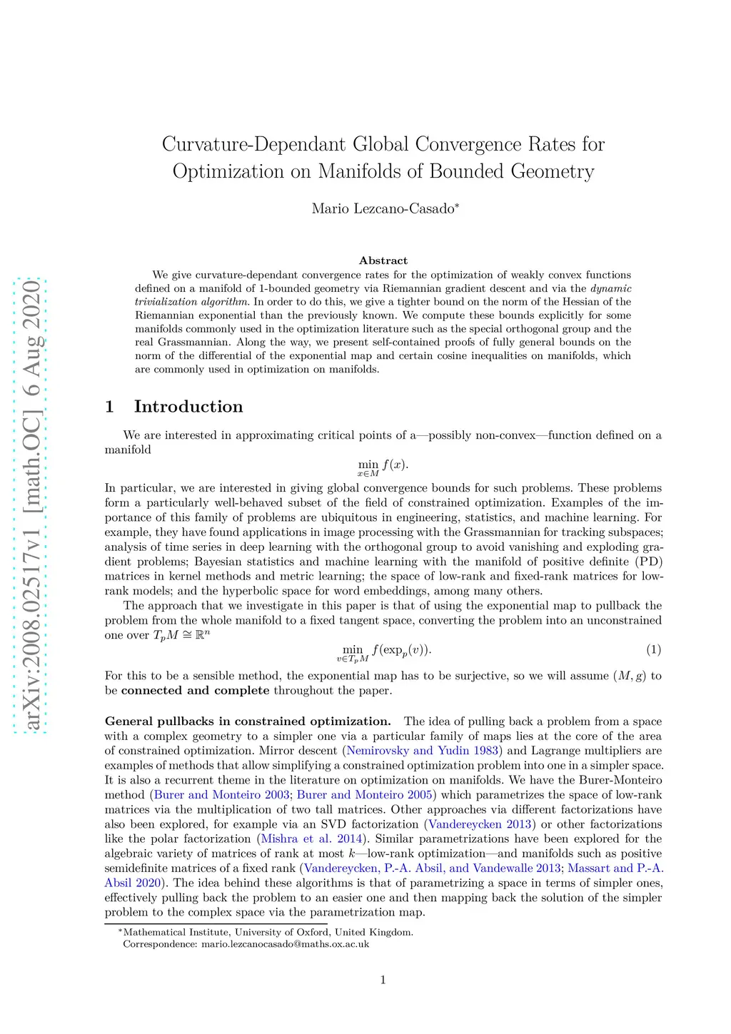 Curvature-Dependant Global Convergence Rates for Optimization on