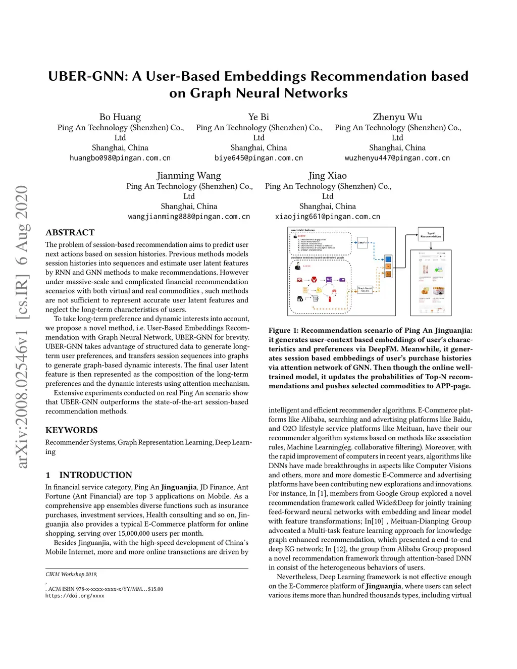 The problem of session-based recommendation aims to predict user next actions based on session histories. Previous methods models session histories into sequences and estimate user latent features by RNN and GNN methods to make recommendations. However under massive-scale and complicated financial recommendation scenarios with both virtual and real commodities , such methods are not sufficient to represent accurate user latent features and neglect the long-term characteristics of users. To take long-term preference and dynamic interests into account, we propose a novel method, i.e. User-Based Embeddings Recommendation with Graph Neural Network, UBER-GNN for brevity. UBER-GNN takes advantage of structured data to generate longterm user preferences, and transfers session sequences into graphs to generate graph-based dynamic interests. The final user latent feature is then represented as the composition of the long-term preferences and the dynamic interests using attention mechanism. Extensive experiments conducted on real Ping An scenario show that UBER-GNN outperforms the state-of-the-art session-based recommendation methods.