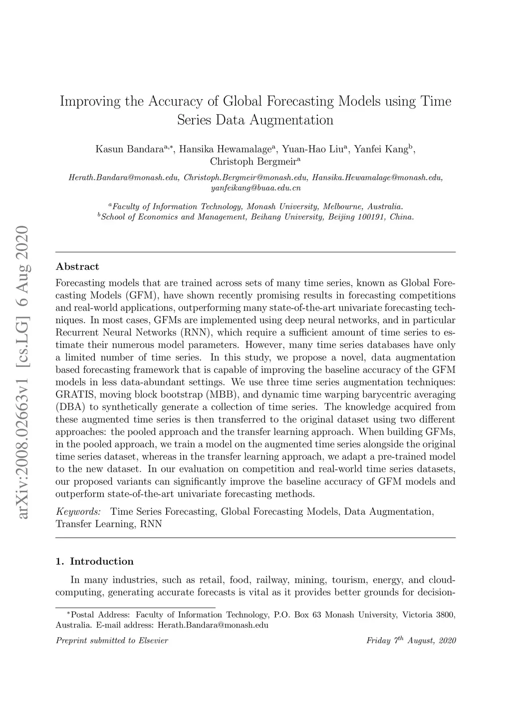 Improving the Accuracy of Global Forecasting Models using Time Series