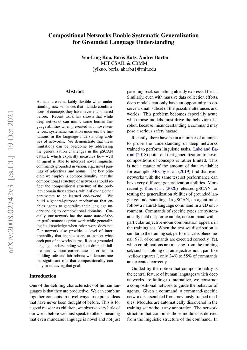 Compositional Networks Enable Systematic Generalization for Grounded