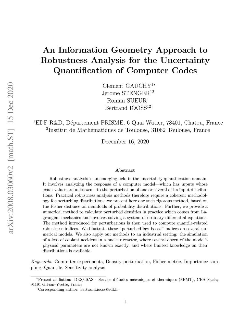 Robustness analysis is an emerging field in the domain of uncertainty quantification. It consists of analysing the response of a computer model with uncertain inputs to the perturbation of one or several of its input distributions. Thus, a practical robustness analysis methodology should rely on a coherent definition of a distribution perturbation. This paper addresses this issue by exposing a rigorous way of perturbing densities. The proposed methodology is based the Fisher distance on manifolds of probability distributions. A numerical method to calculate perturbed densities in practice is presented. This method comes from Lagrangian mechanics and consists of solving an ordinary differential equations system. This perturbation definition is then used to compute quantile-oriented robustness indices. The resulting Perturbed-Law based sensitivity Indices (PLI) are illustrated on several numerical models. This methodology is also applied to an industrial study (simulation of a loss of coolant accident in a nuclear reactor), where several tens of the model physical parameters are uncertain with limited knowledge concerning their distributions.