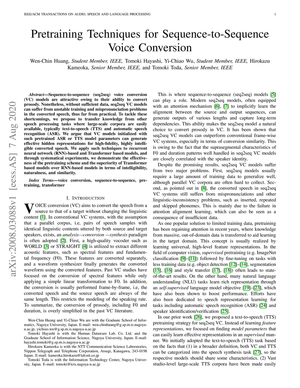 Pretraining Techniques for Sequence-to-Sequence Voice Conversion