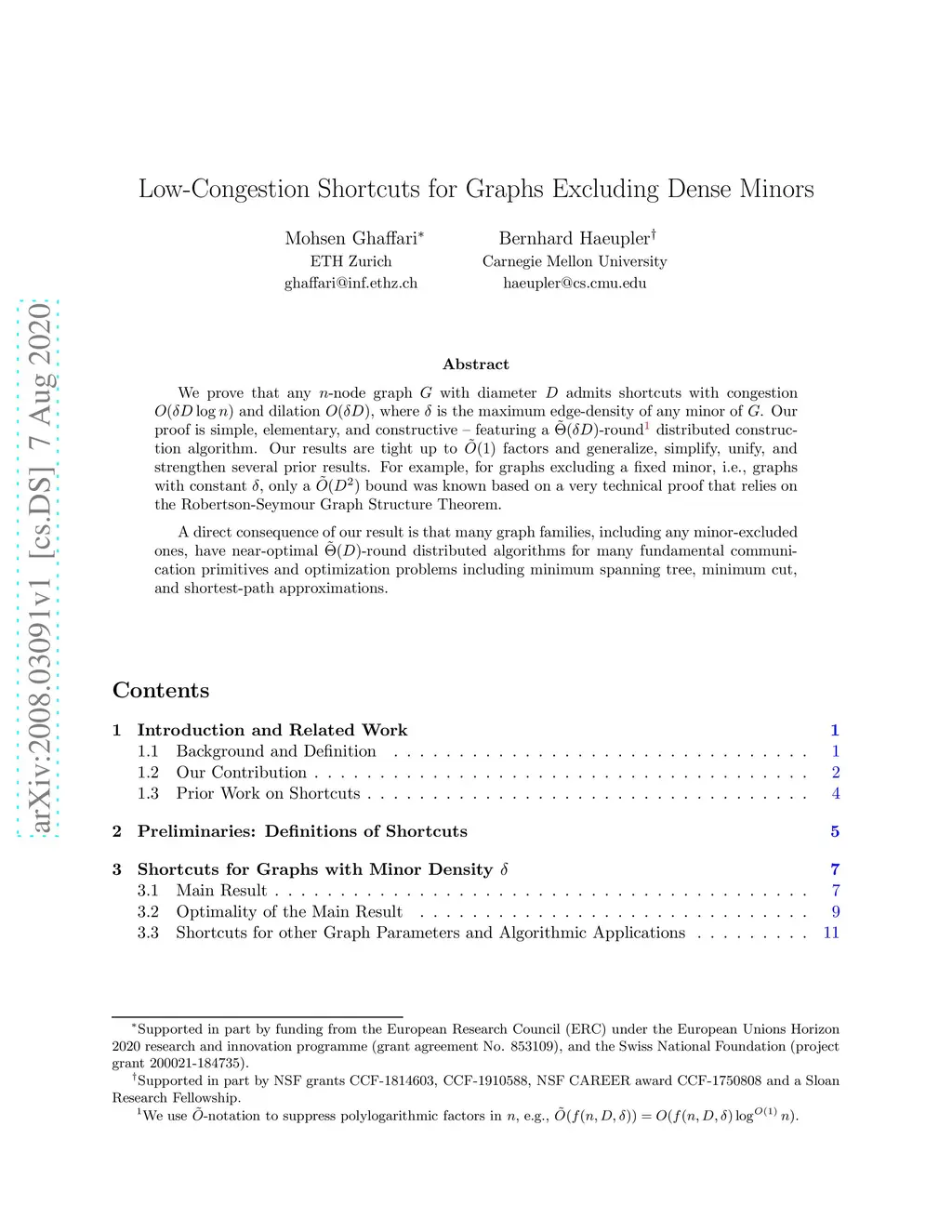 We prove that any -node graph with diameter admits shortcuts with congestion and dilation , where is the maximum edge-density of any minor of . Our proof is simple, elementary, and constructive - featuring a -round distributed construction algorithm. Our results are tight up to factors and generalize, simplify, unify, and strengthen several prior results. For example, for graphs excluding a fixed minor, i.e., graphs with constant , only a bound was known based on a very technical proof that relies on the Robertson-Seymour Graph Structure Theorem. A direct consequence of our result is that many graph families, including any minor-excluded ones, have near-optimal -round distributed algorithms for many fundamental communication primitives and optimization problems including minimum spanning tree, minimum cut, and shortest-path approximations.