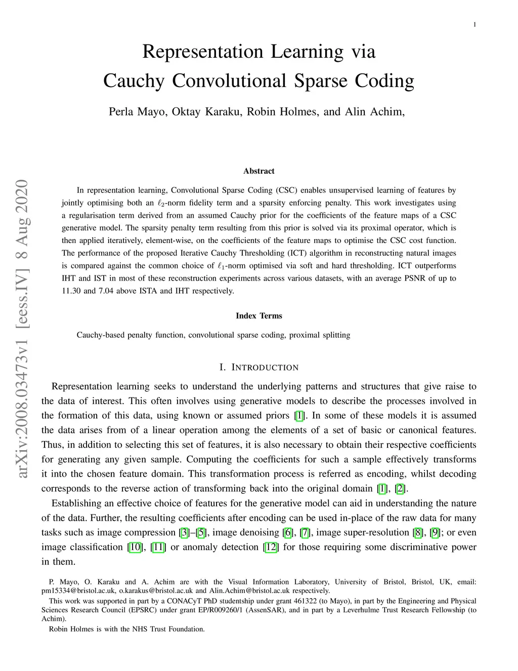Representation Learning via Cauchy Convolutional Sparse Coding