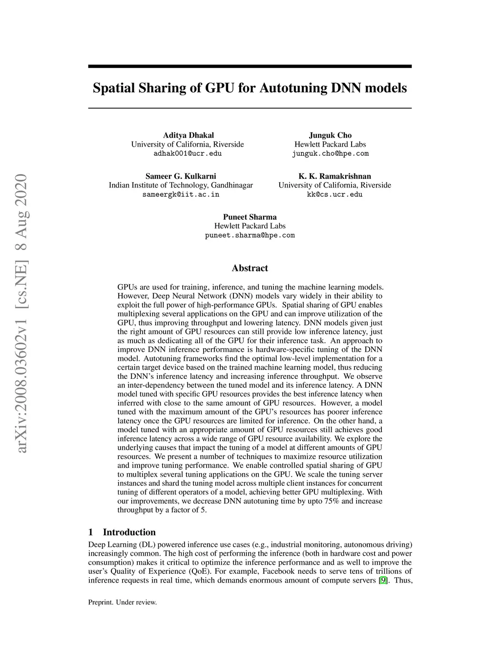 Spatial Sharing of GPU for Autotuning DNN models
