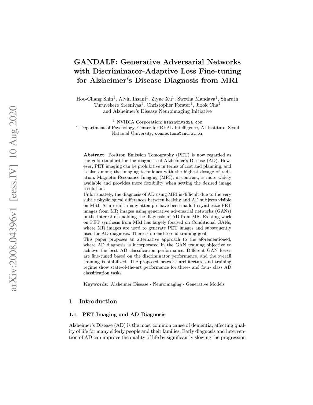 Positron Emission Tomography (PET) is now regarded as the gold standard for the diagnosis of Alzheimer's Disease (AD). However, PET imaging can be prohibitive in terms of cost and planning, and is also among the imaging techniques with the highest dosage of radiation. Magnetic Resonance Imaging (MRI), in contrast, is more widely available and provides more flexibility when setting the desired image resolution. Unfortunately, the diagnosis of AD using MRI is difficult due to the very subtle physiological differences between healthy and AD subjects visible on MRI. As a result, many attempts have been made to synthesize PET images from MR images using generative adversarial networks (GANs) in the interest of enabling the diagnosis of AD from MR. Existing work on PET synthesis from MRI has largely focused on Conditional GANs, where MR images are used to generate PET images and subsequently used for AD diagnosis. There is no end-to-end training goal. This paper proposes an alternative approach to the aforementioned, where AD diagnosis is incorporated in the GAN training objective to achieve the best AD classification performance. Different GAN lossesare fine-tuned based on the discriminator performance, and the overall training is stabilized. The proposed network architecture and training regime show state-of-the-art performance for three- and four- class AD classification tasks.