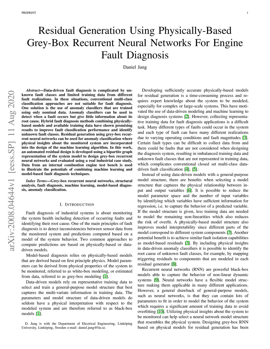 Residual Generation Using Physically-Based Grey-Box Recurrent Neural