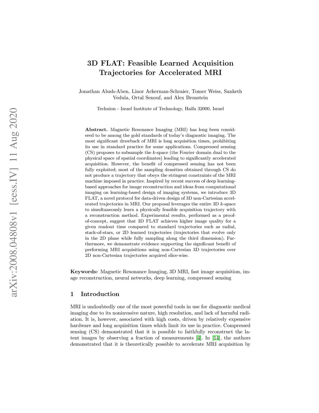 3D FLAT: Feasible Learned Acquisition Trajectories for Accelerated MRI