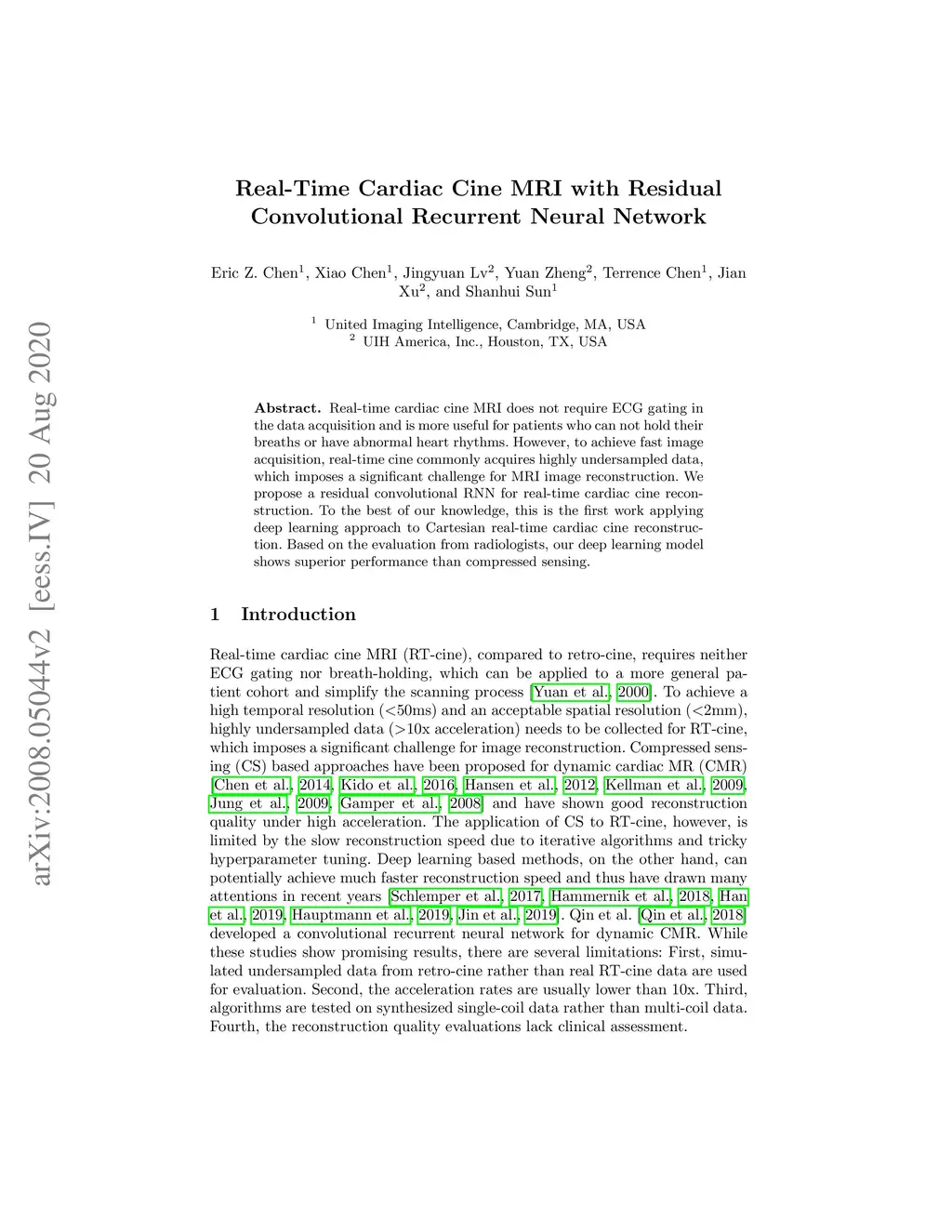 Real-Time Cardiac Cine MRI with Residual Convolutional Recurrent Neural