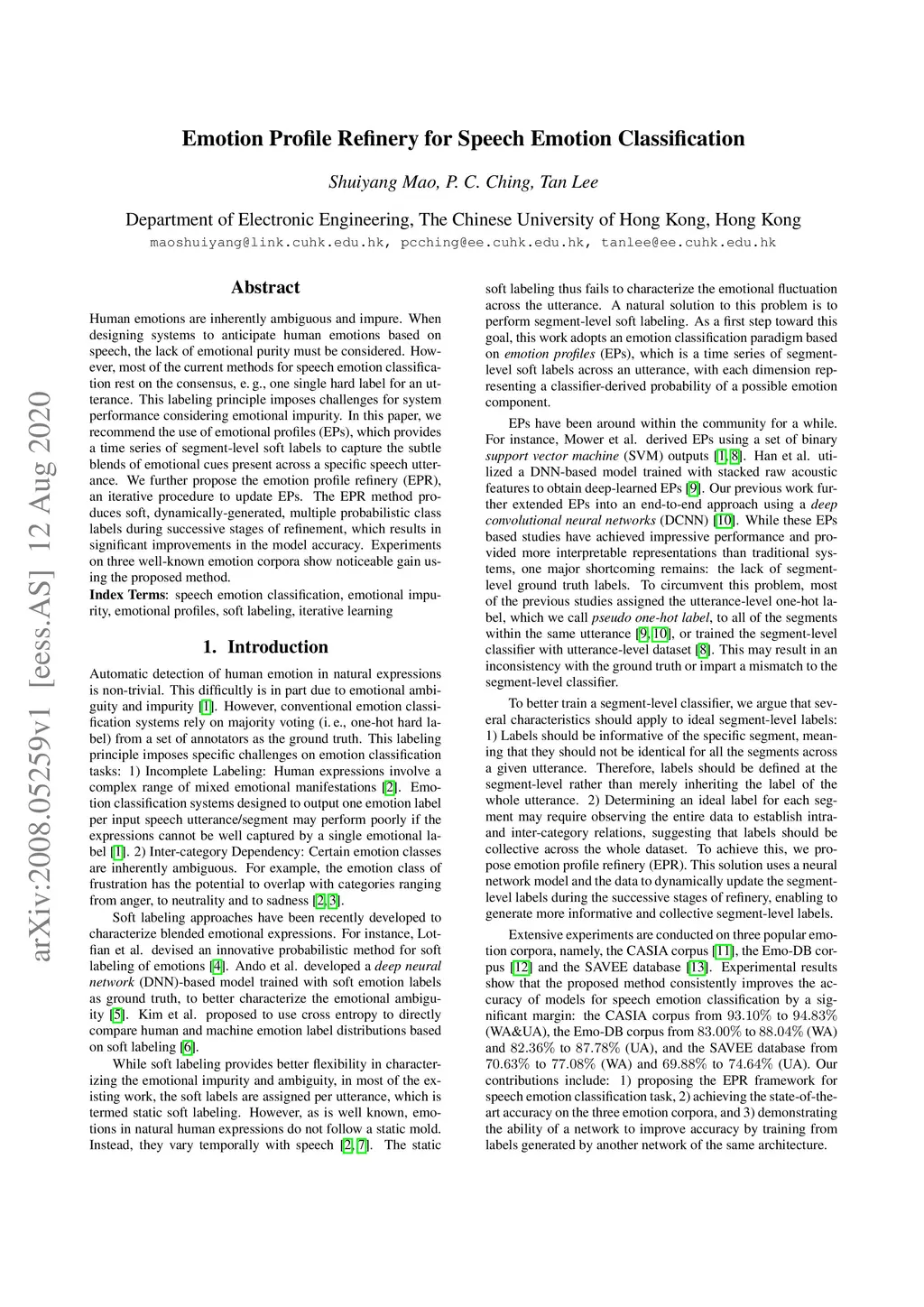 Emotion Profile Refinery for Speech Emotion Classification