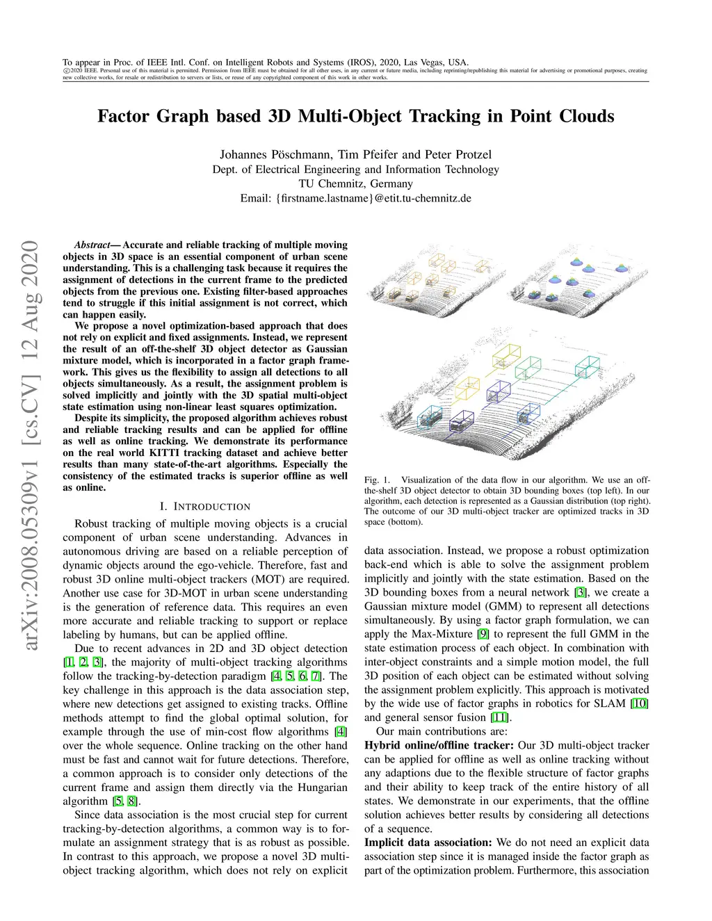 Factor Graph based 3D Multi-Object Tracking in Point Clouds
