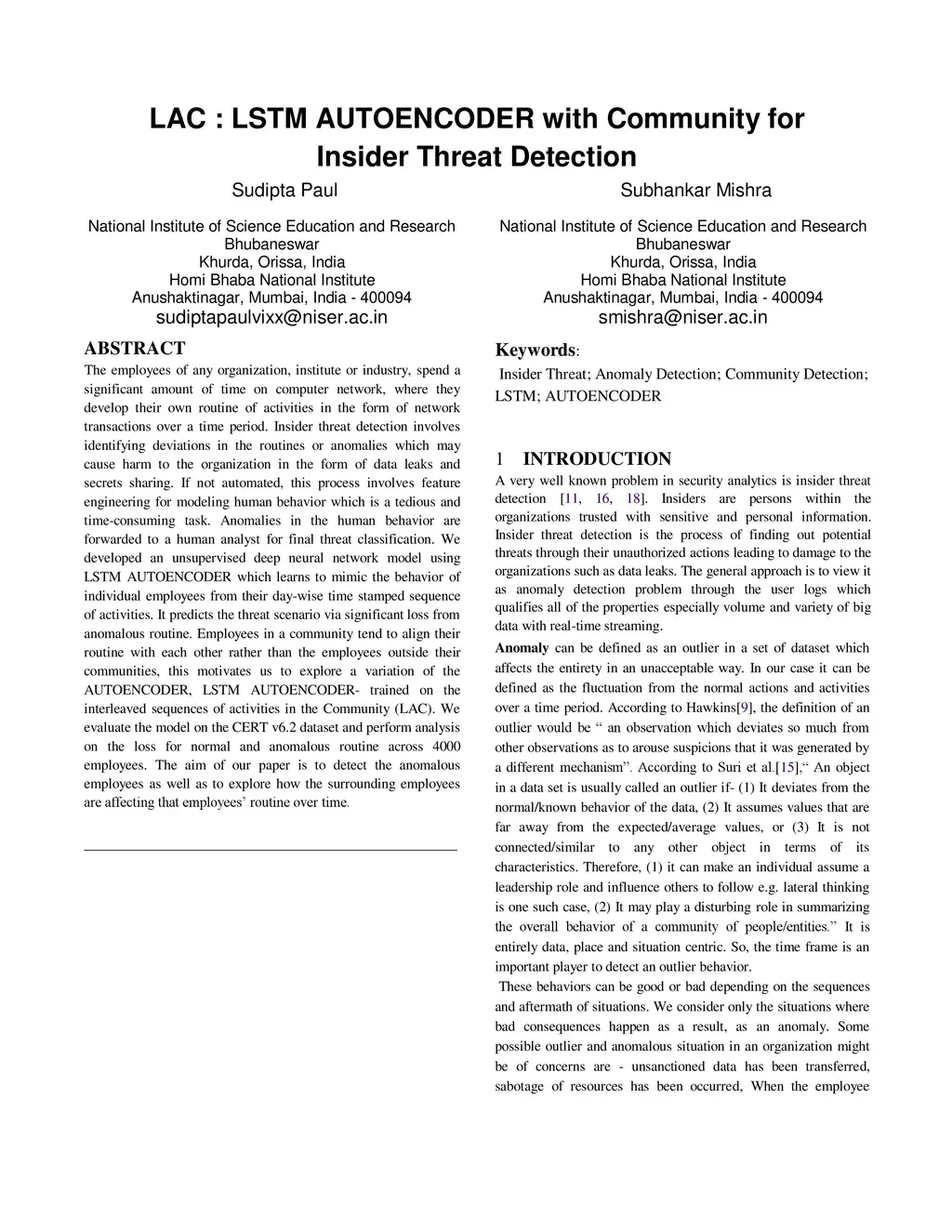 LAC : LSTM AUTOENCODER with Community for Insider Threat Detection