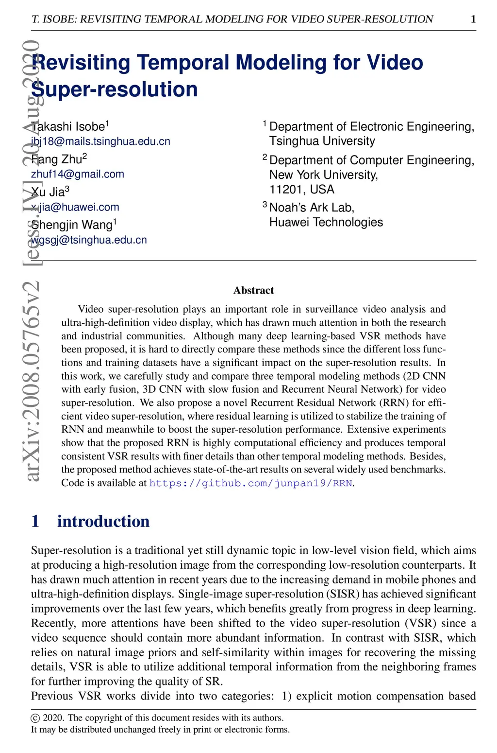 Video super-resolution plays an important role in surveillance video analysis and ultra-high-definition video display, which has drawn much attention in both the research and industrial communities. Although many deep learning-based VSR methods have been proposed, it is hard to directly compare these methods since the different loss functions and training datasets have a significant impact on the super-resolution results. In this work, we carefully study and compare three temporal modeling methods (2D CNN with early fusion, 3D CNN with slow fusion and Recurrent Neural Network) for video super-resolution. We also propose a novel Recurrent Residual Network (RRN) for efficient video super-resolution, where residual learning is utilized to stabilize the training of RNN and meanwhile to boost the super-resolution performance. Extensive experiments show that the proposed RRN is highly computational efficiency and produces temporal consistent VSR results with finer details than other temporal modeling methods. Besides, the proposed method achieves state-of-the-art results on several widely used benchmarks.