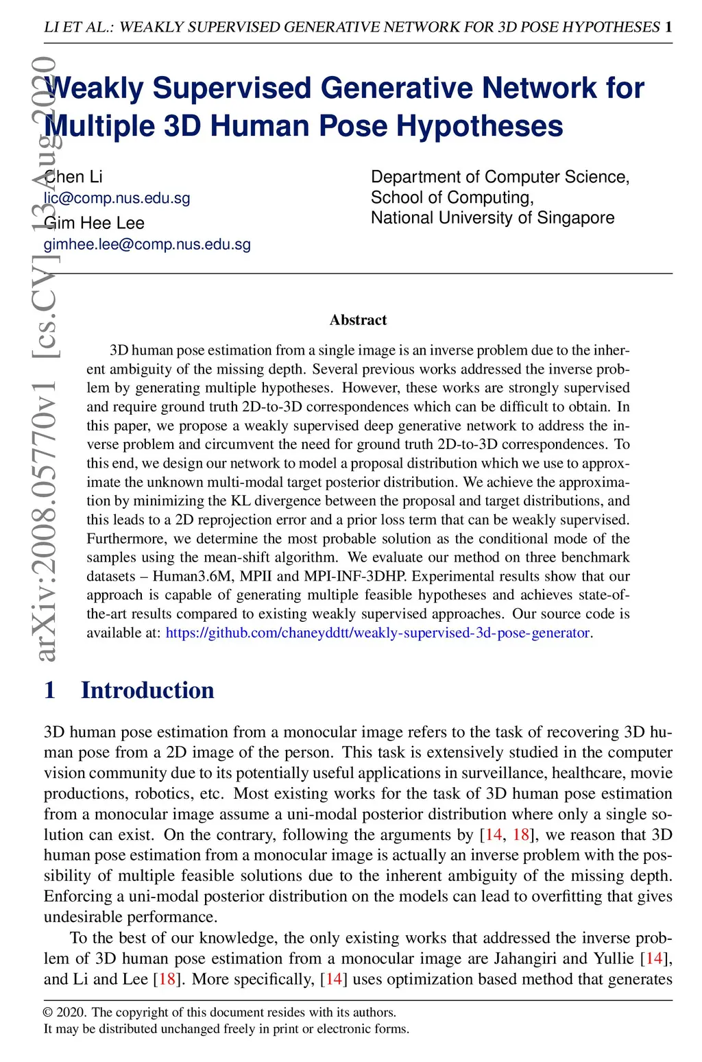 Weakly Supervised Generative Network for Multiple 3D Human Pose