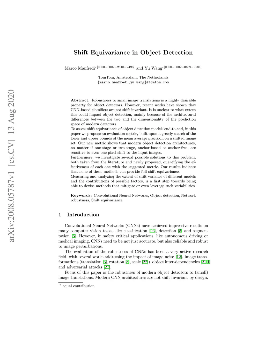 Robustness to small image translations is a highly desirable property for object detectors. However, recent works have shown that CNN-based classifiers are not shift invariant. It is unclear to what extent this could impact object detection, mainly because of the architectural differences between the two and the dimensionality of the prediction space of modern detectors. To assess shift equivariance of object detection models end-to-end, in this paper we propose an evaluation metric, built upon a greedy search of the lower and upper bounds of the mean average precision on a shifted image set. Our new metric shows that modern object detection architectures, no matter if one-stage or two-stage, anchor-based or anchor-free, are sensitive to even one pixel shift to the input images. Furthermore, we investigate several possible solutions to this problem, both taken from the literature and newly proposed, quantifying the effectiveness of each one with the suggested metric. Our results indicate that none of these methods can provide full shift equivariance. Measuring and analyzing the extent of shift variance of different models and the contributions of possible factors, is a first step towards being able to devise methods that mitigate or even leverage such variabilities.