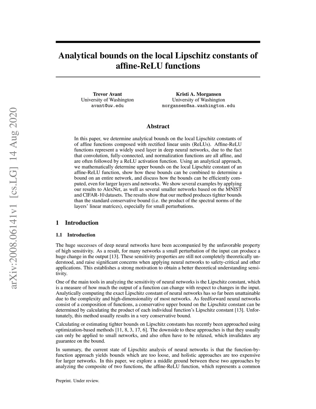 Analytical bounds on the local Lipschitz constants of affine-ReLU