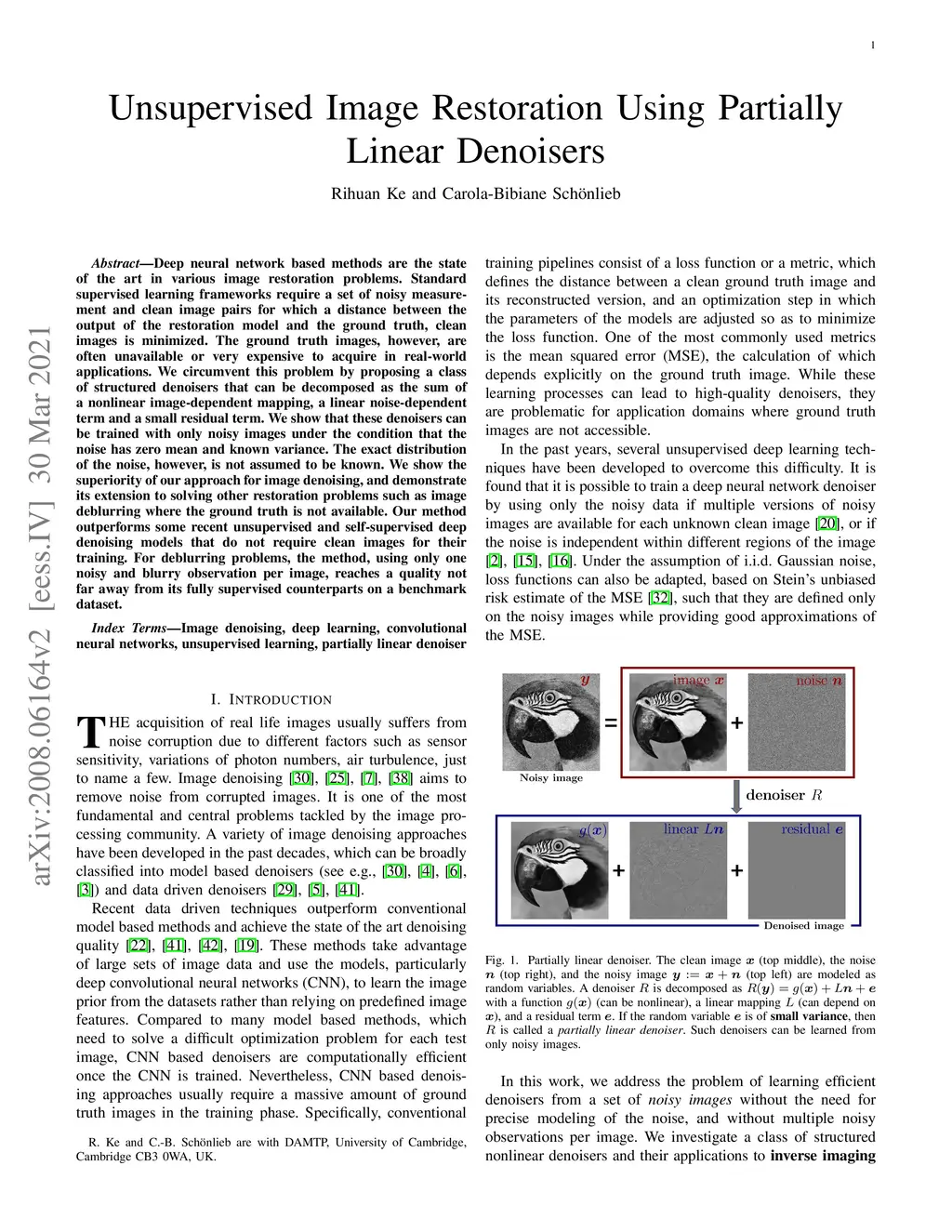 Unsupervised Image Restoration Using Partially Linear Denoisers