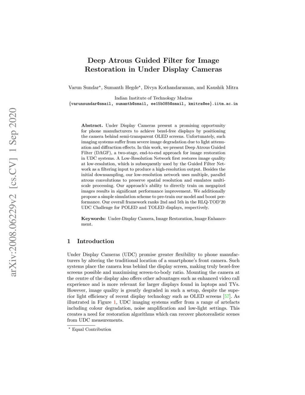 Deep Atrous Guided Filter for Image Restoration in Under Display Cameras