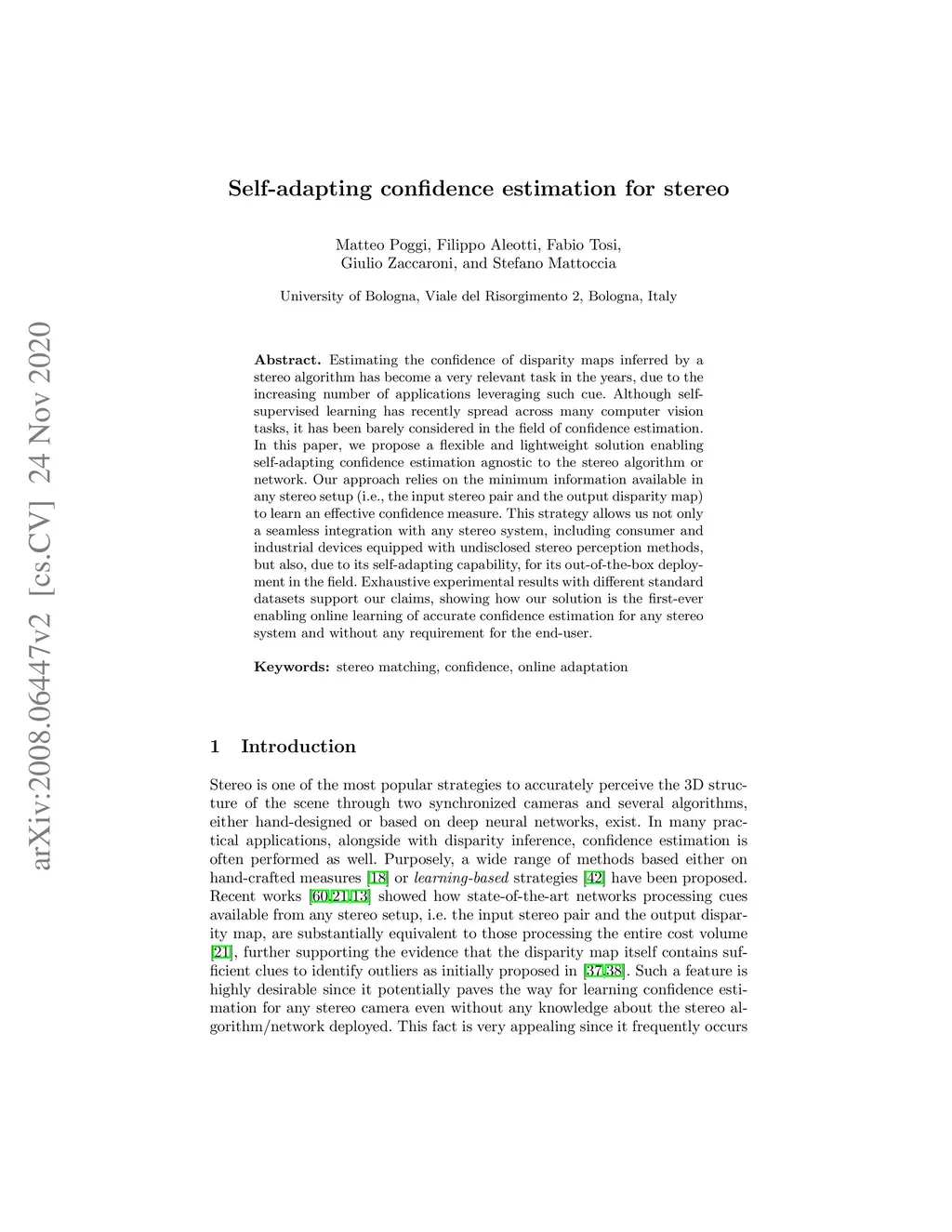 Estimating the confidence of disparity maps inferred by a stereo algorithm has become a very relevant task in the years, due to the increasing number of applications leveraging such cue. Although self-supervised learning has recently spread across many computer vision tasks, it has been barely considered in the field of confidence estimation. In this paper, we propose a flexible and lightweight solution enabling self-adapting confidence estimation agnostic to the stereo algorithm or network. Our approach relies on the minimum information available in any stereo setup (i.e., the input stereo pair and the output disparity map) to learn an effective confidence measure. This strategy allows us not only a seamless integration with any stereo system, including consumer and industrial devices equipped with undisclosed stereo perception methods, but also, due to its self-adapting capability, for its out-of-the-box deployment in the field. Exhaustive experimental results with different standard datasets support our claims, showing how our solution is the first-ever enabling online learning of accurate confidence estimation for any stereo system and without any requirement for the end-user.