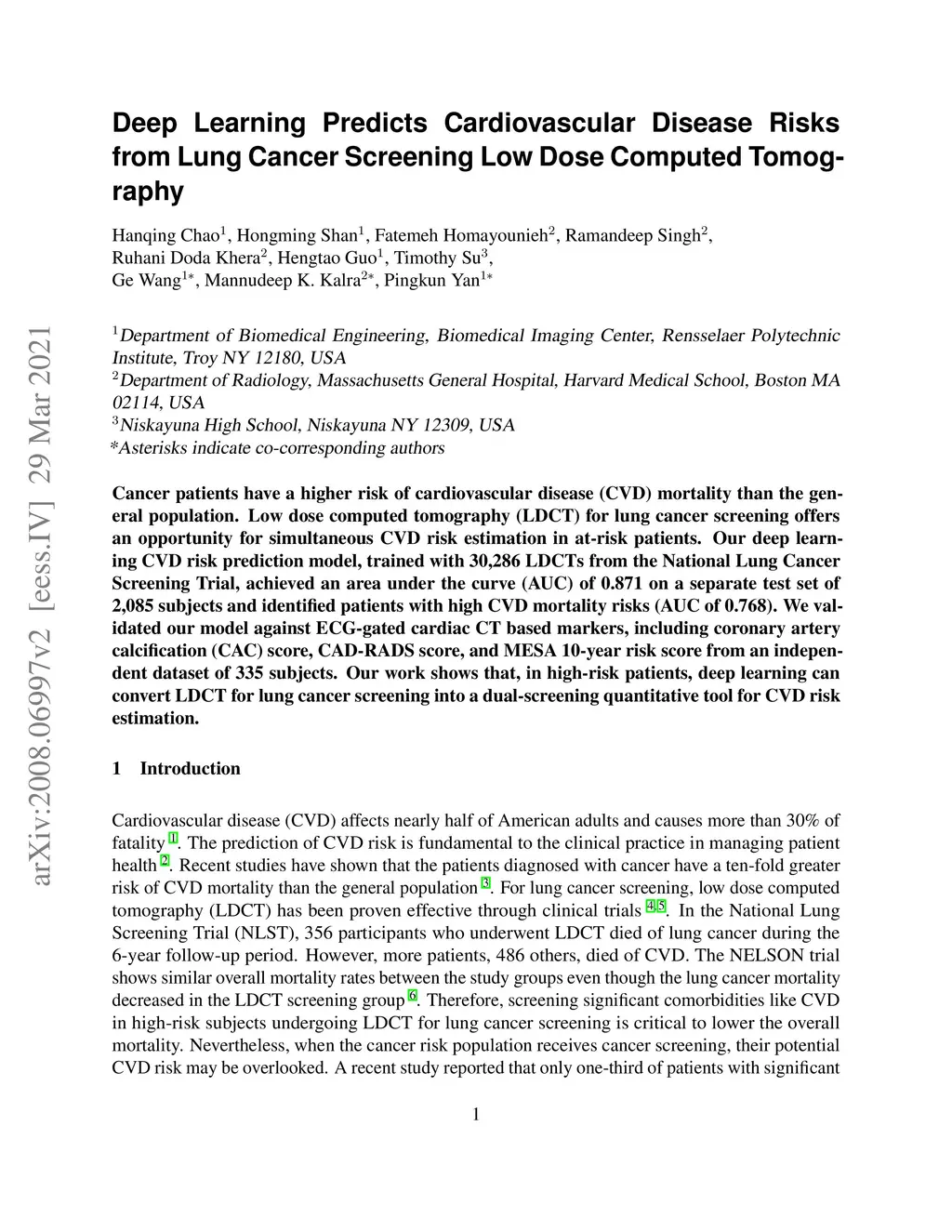 Deep Learning Predicts Cardiovascular Disease Risks from Lung Cancer