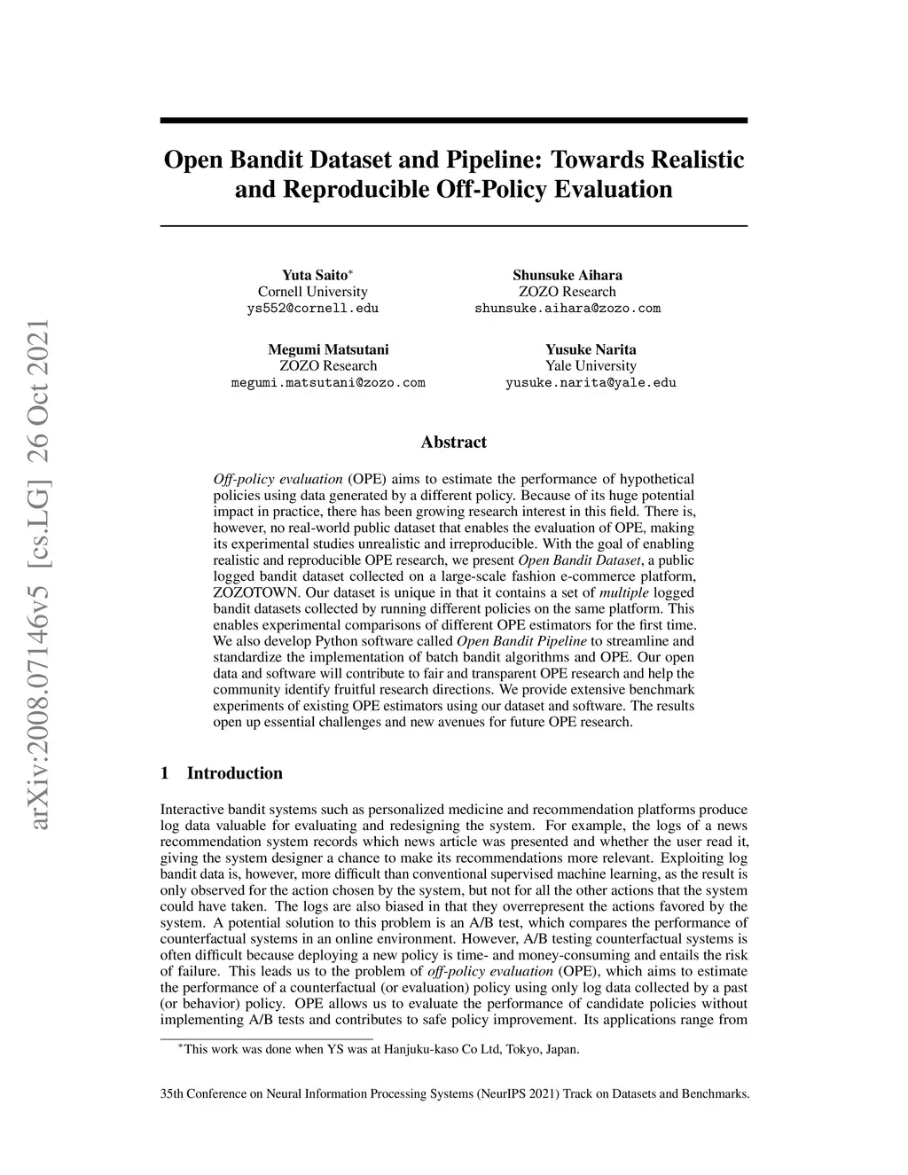 Open Bandit Dataset and Pipeline: Towards Realistic and Reproducible
