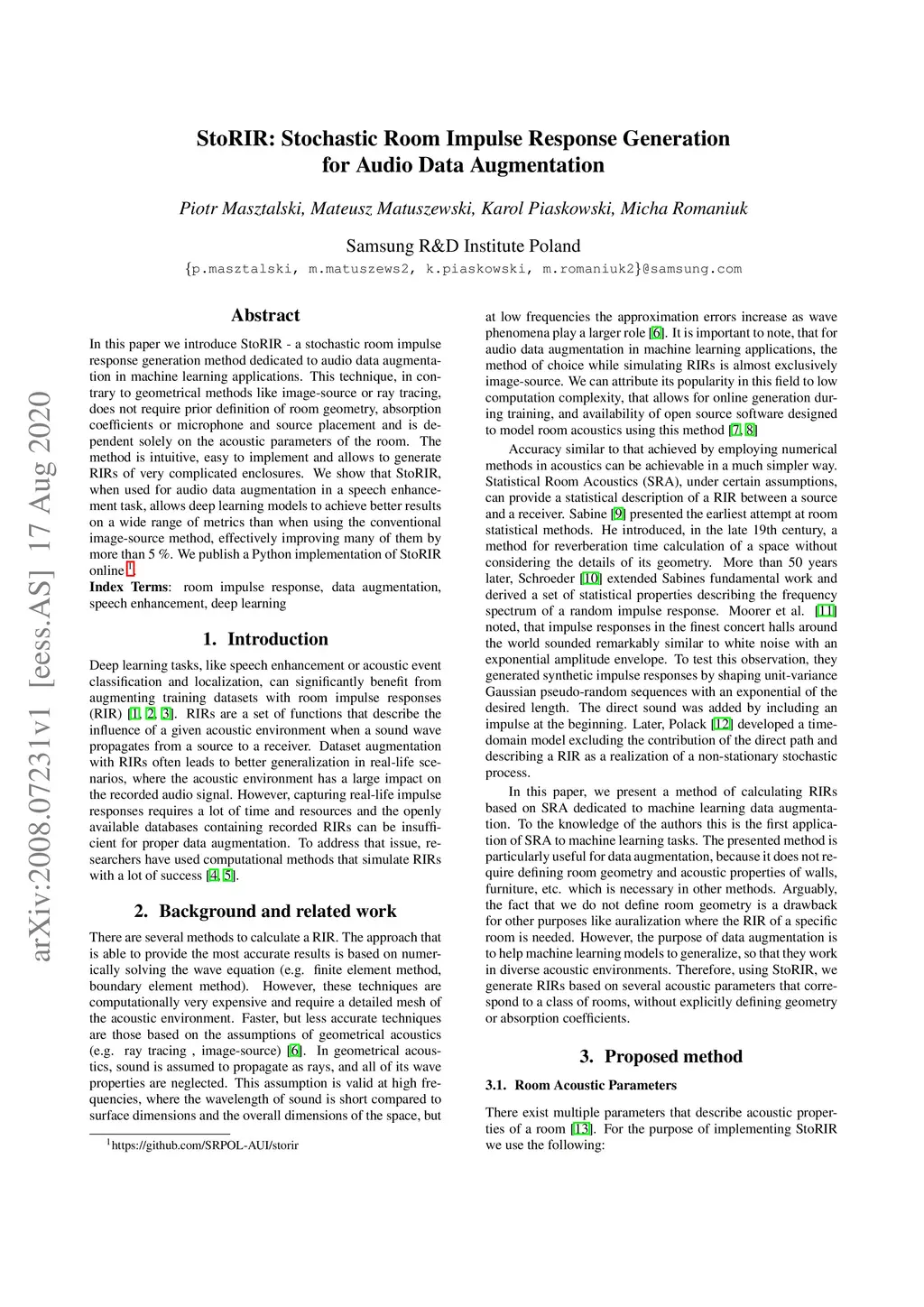 StoRIR: Stochastic Room Impulse Response Generation for Audio Data