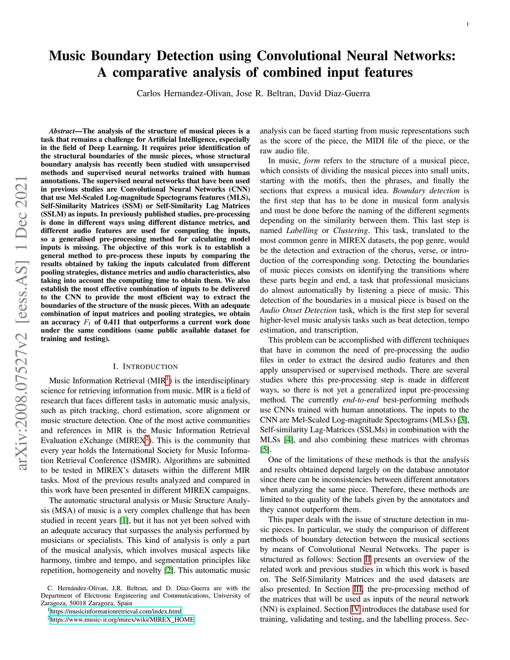 Music Boundary Detection using Convolutional Neural Networks: A