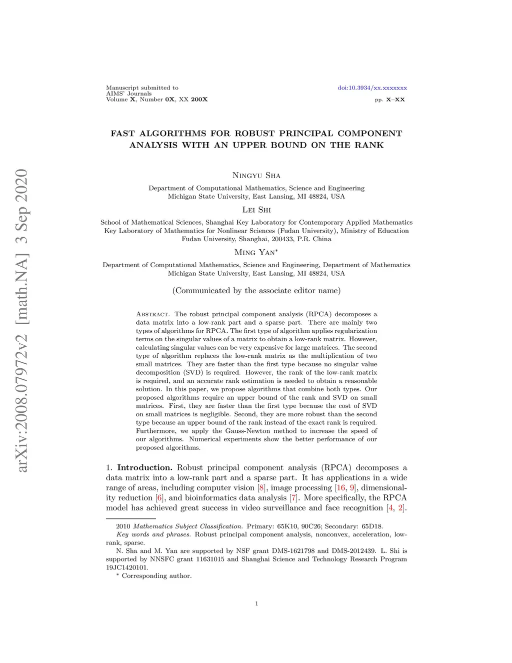 Fast algorithms for robust principal component analysis with an upper