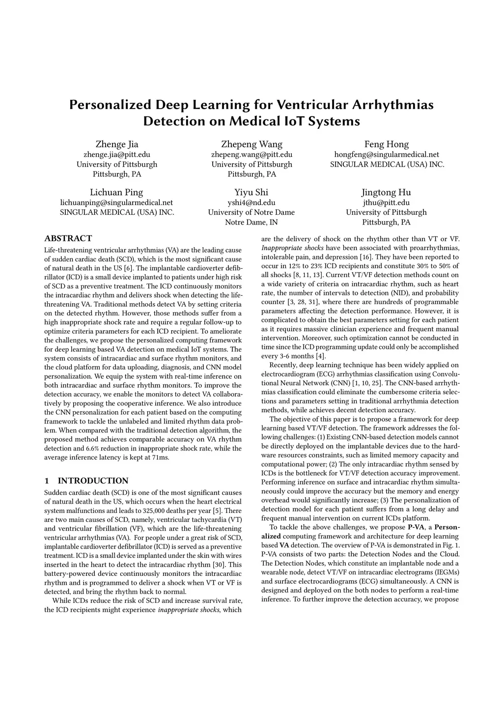 Life-threatening ventricular arrhythmias (VA) are the leading cause of sudden cardiac death (SCD), which is the most significant cause of natural death in the US. The implantable cardioverter defibrillator (ICD) is a small device implanted to patients under high risk of SCD as a preventive treatment. The ICD continuously monitors the intracardiac rhythm and delivers shock when detecting the life-threatening VA. Traditional methods detect VA by setting criteria on the detected rhythm. However, those methods suffer from a high inappropriate shock rate and require a regular follow-up to optimize criteria parameters for each ICD recipient. To ameliorate the challenges, we propose the personalized computing framework for deep learning based VA detection on medical IoT systems. The system consists of intracardiac and surface rhythm monitors, and the cloud platform for data uploading, diagnosis, and CNN model personalization. We equip the system with real-time inference on both intracardiac and surface rhythm monitors. To improve the detection accuracy, we enable the monitors to detect VA collaboratively by proposing the cooperative inference. We also introduce the CNN personalization for each patient based on the computing framework to tackle the unlabeled and limited rhythm data problem. When compared with the traditional detection algorithm, the proposed method achieves comparable accuracy on VA rhythm detection and 6.6% reduction in inappropriate shock rate, while the average inference latency is kept at 71ms.