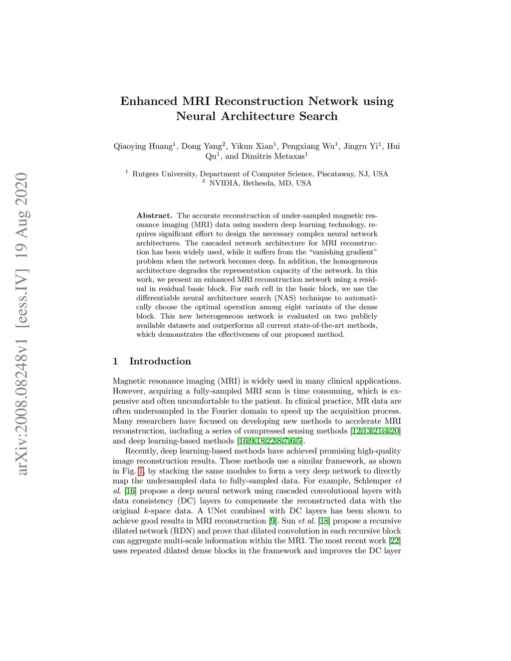 Enhanced MRI Reconstruction Network using Neural Architecture Search