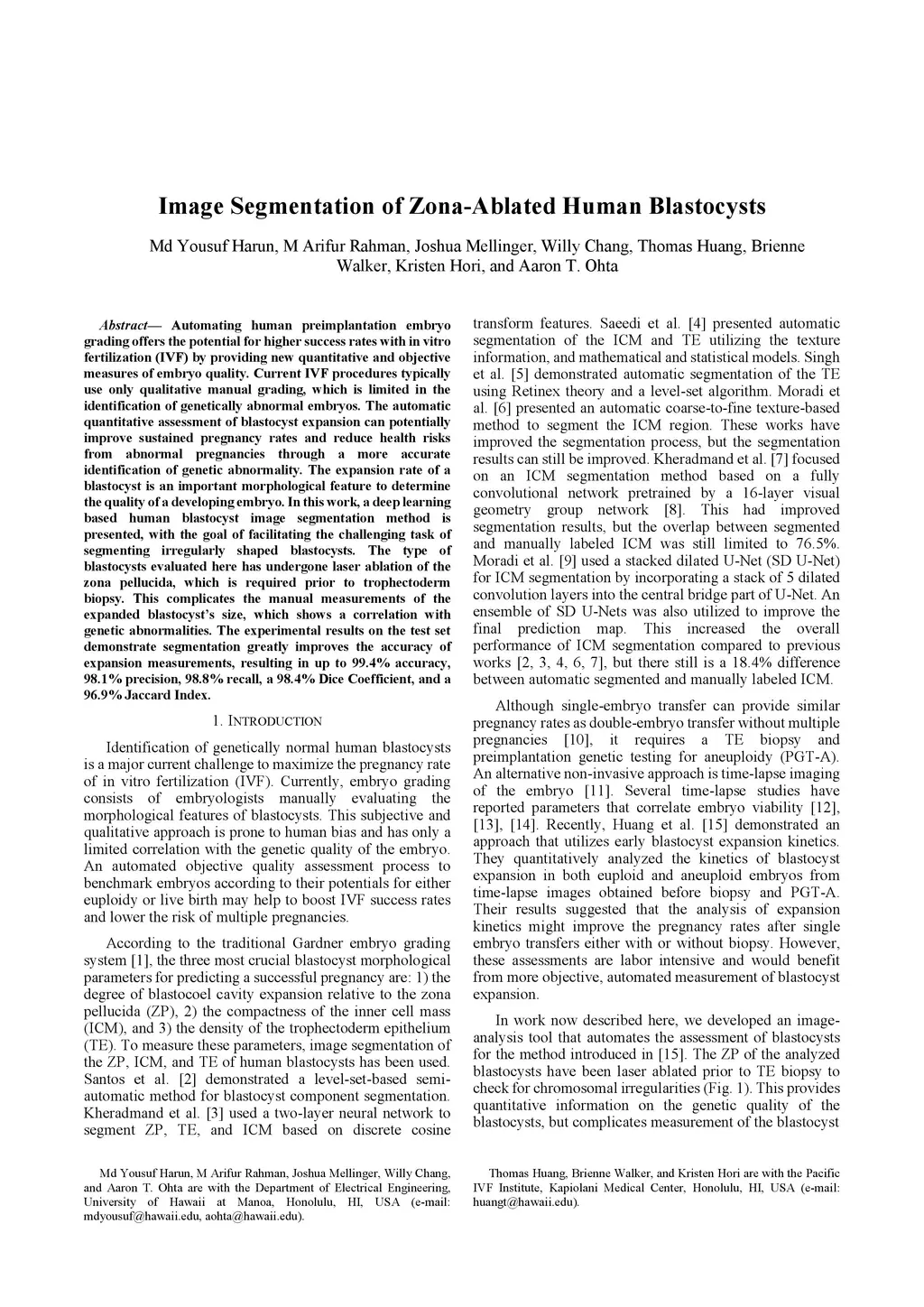 Image Segmentation of Zona-Ablated Human Blastocysts
