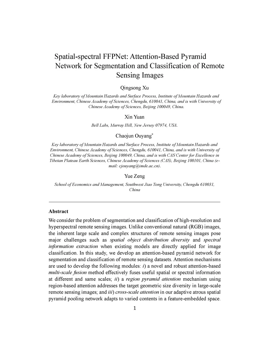Spatial--spectral FFPNet: Attention-Based Pyramid Network for