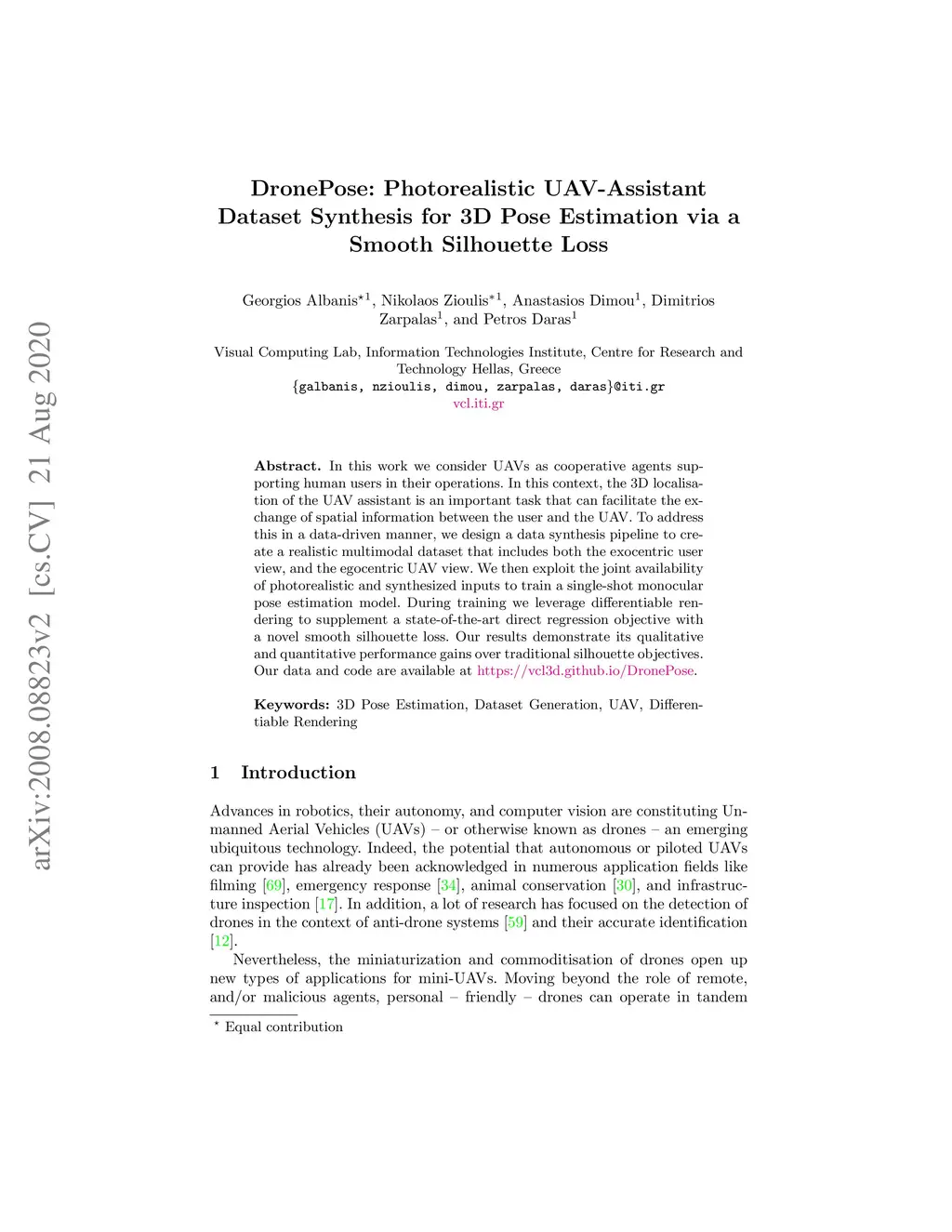 DronePose: Photorealistic UAV-Assistant Dataset Synthesis for 3D Pose