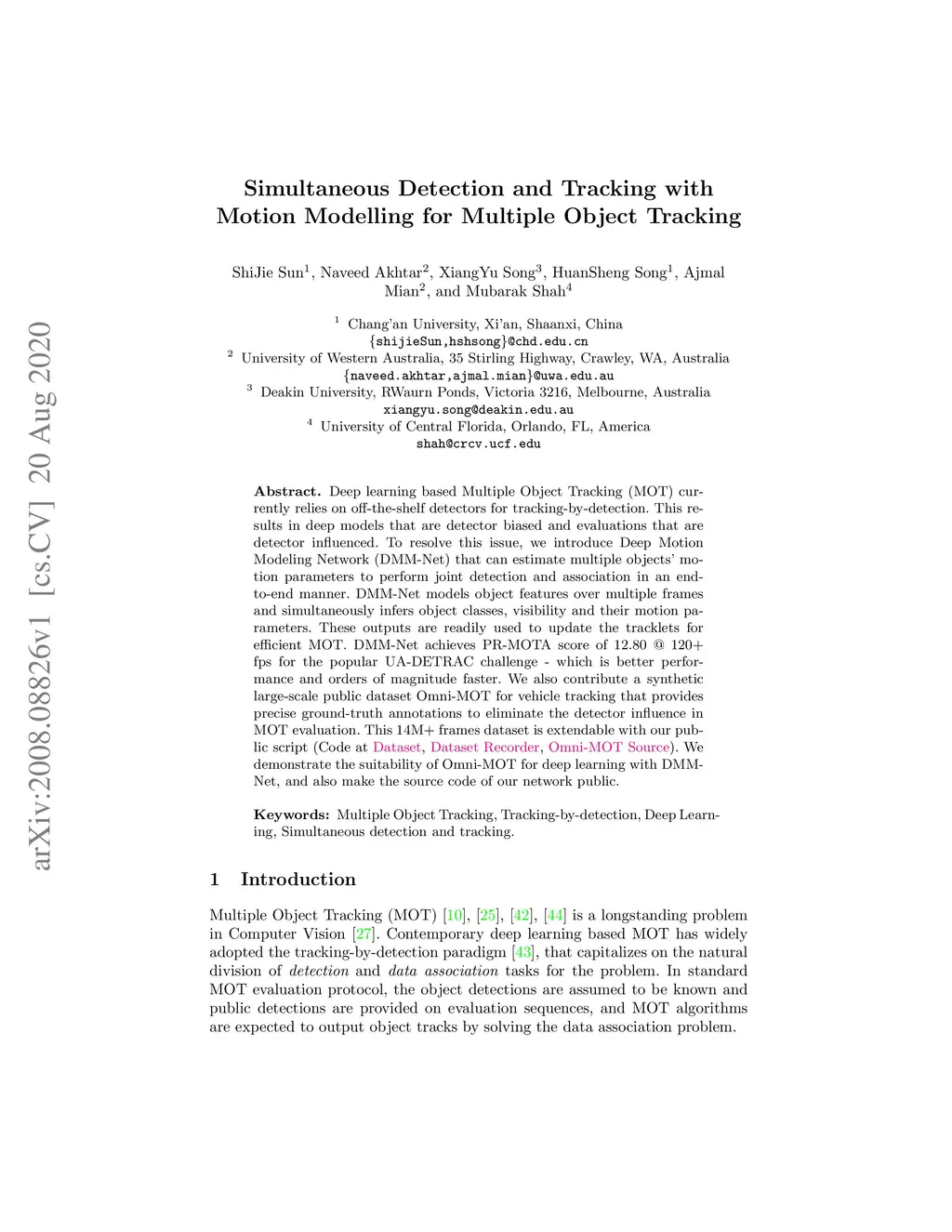 Simultaneous Detection and Tracking with Motion Modelling for Multiple