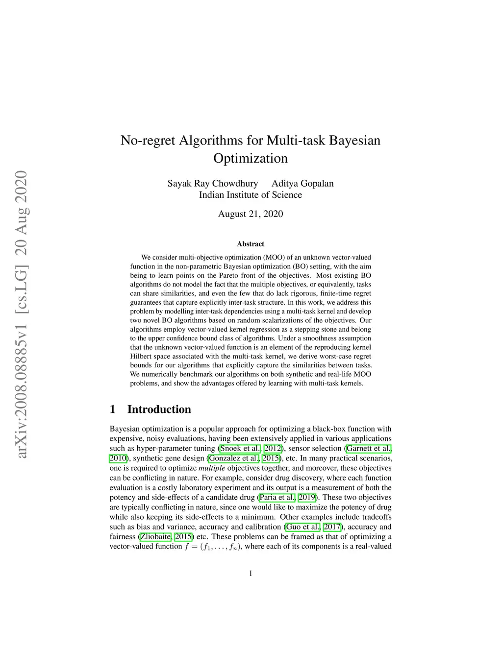 No-regret Algorithms for Multi-task Bayesian Optimization