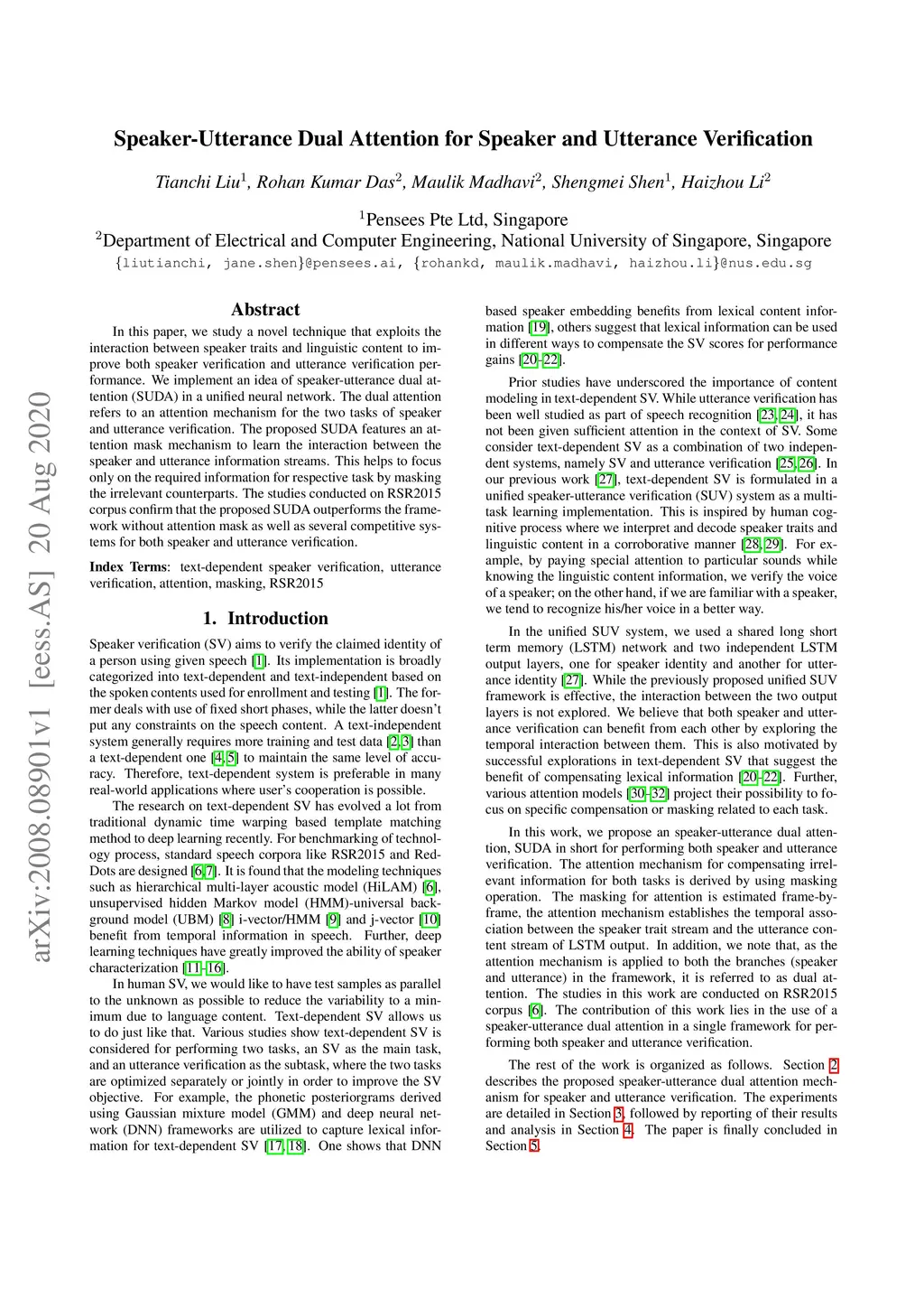 Speaker-Utterance Dual Attention for Speaker and Utterance Verification