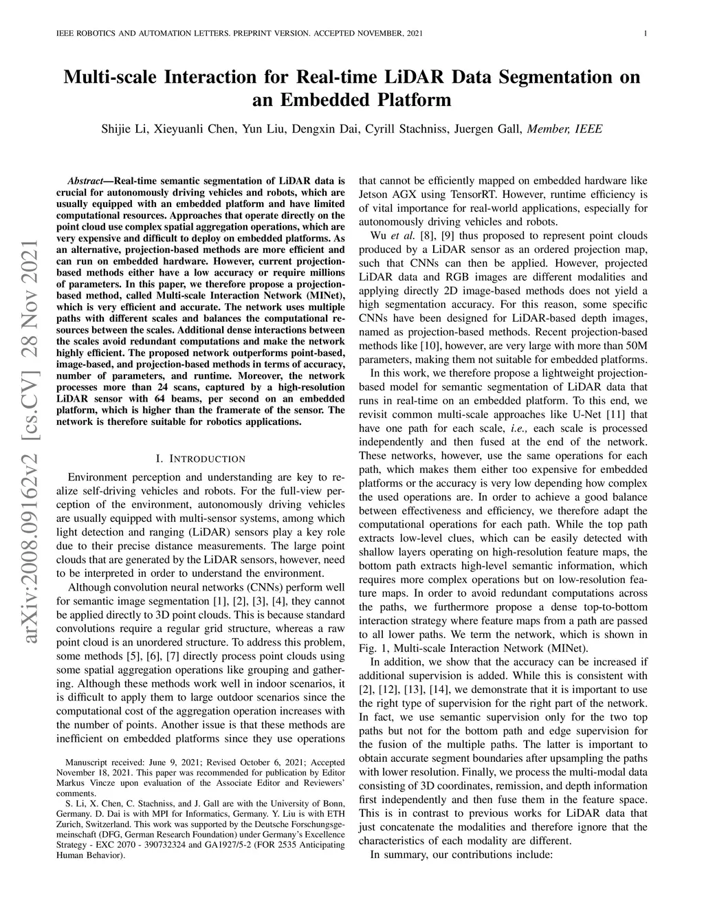 Multi-scale Interaction for Real-time LiDAR Data Segmentation on an