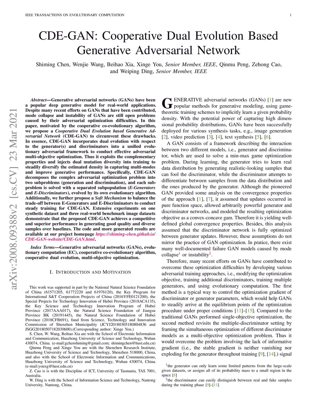 CDE-GAN: Cooperative Dual Evolution Based Generative Adversarial Network