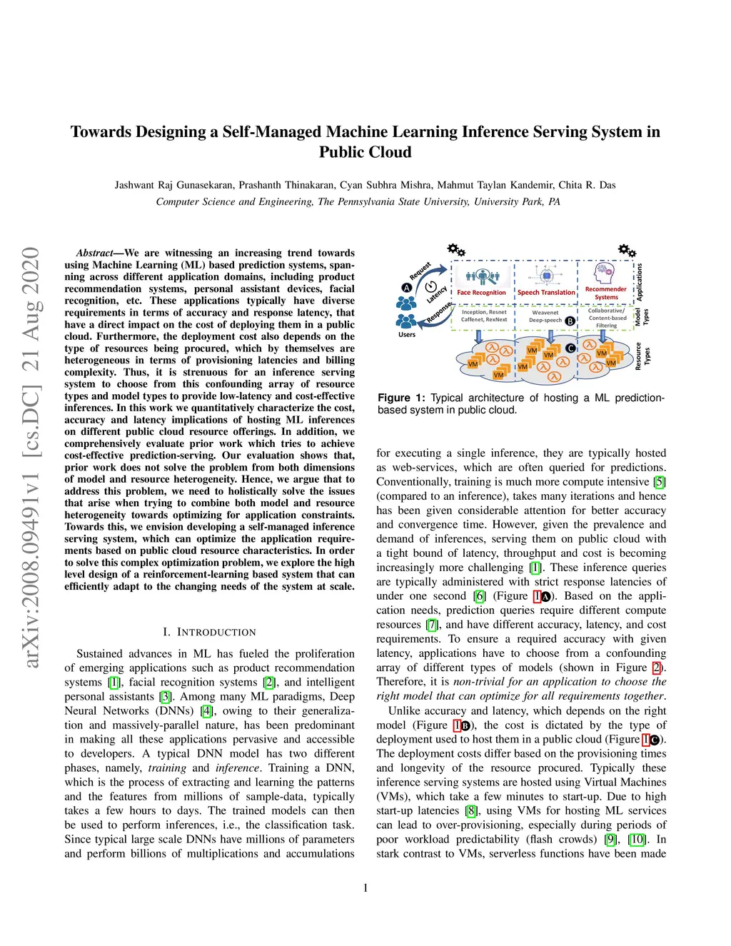 We are witnessing an increasing trend towardsusing Machine Learning (ML) based prediction systems, span-ning across different application domains, including productrecommendation systems, personal assistant devices, facialrecognition, etc. These applications typically have diverserequirements in terms of accuracy and response latency, thathave a direct impact on the cost of deploying them in a publiccloud. Furthermore, the deployment cost also depends on thetype of resources being procured, which by themselves areheterogeneous in terms of provisioning latencies and billingcomplexity. Thus, it is strenuous for an inference servingsystem to choose from this confounding array of resourcetypes and model types to provide low-latency and cost-effectiveinferences. In this work we quantitatively characterize the cost,accuracy and latency implications of hosting ML inferenceson different public cloud resource offerings. In addition, wecomprehensively evaluate prior work which tries to achievecost-effective prediction-serving. Our evaluation shows that,prior work does not solve the problem from both dimensionsof model and resource heterogeneity. Hence, we argue that toaddress this problem, we need to holistically solve the issuesthat arise when trying to combine both model and resourceheterogeneity towards optimizing for application constraints.Towards this, we envision developing a self-managed inferenceserving system, which can optimize the application require-ments based on public cloud resource characteristics. In orderto solve this complex optimization problem, we explore the highlevel design of a reinforcement-learning based system that canefficiently adapt to the changing needs of the system at scale.