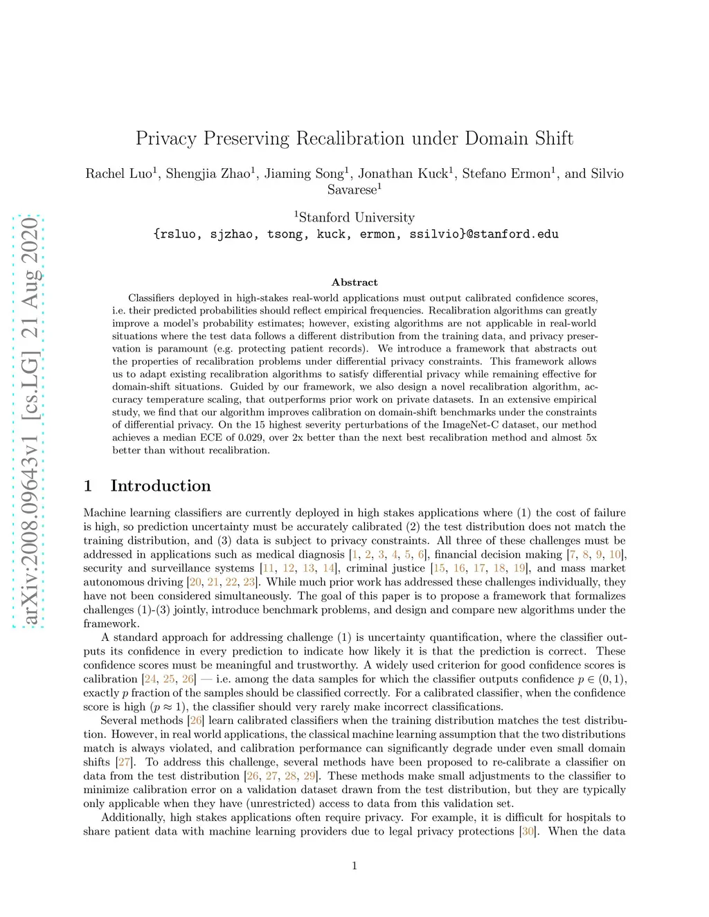 Privacy Preserving Recalibration under Domain Shift