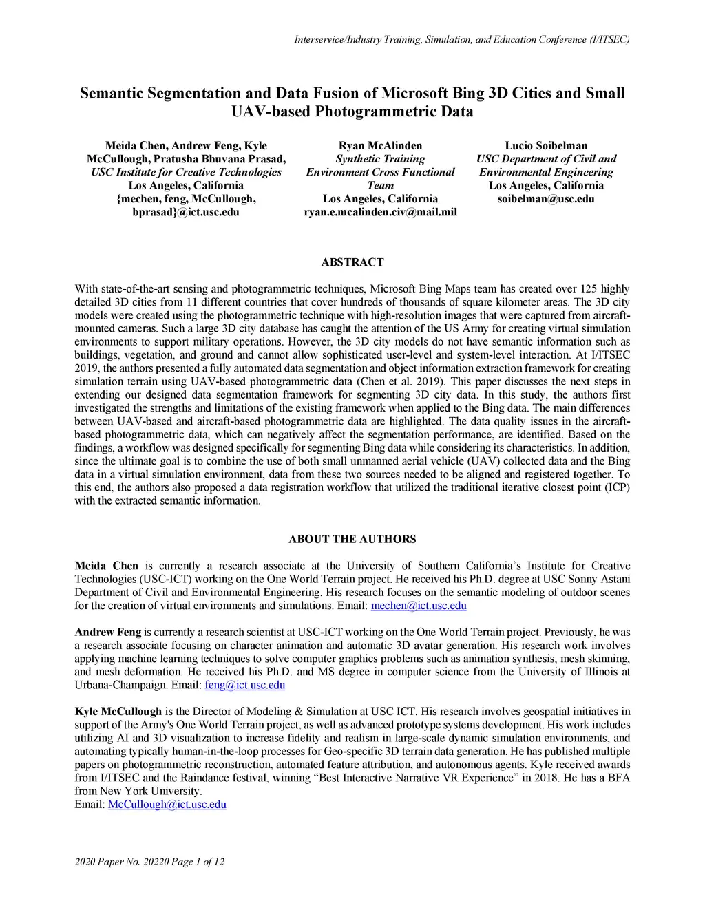 With state-of-the-art sensing and photogrammetric techniques, Microsoft Bing Maps team has created over 125 highly detailed 3D cities from 11 different countries that cover hundreds of thousands of square kilometer areas. The 3D city models were created using the photogrammetric technique with high-resolution images that were captured from aircraft-mounted cameras. Such a large 3D city database has caught the attention of the US Army for creating virtual simulation environments to support military operations. However, the 3D city models do not have semantic information such as buildings, vegetation, and ground and cannot allow sophisticated user-level and system-level interaction. At I/ITSEC 2019, the authors presented a fully automated data segmentation and object information extraction framework for creating simulation terrain using UAV-based photogrammetric data. This paper discusses the next steps in extending our designed data segmentation framework for segmenting 3D city data. In this study, the authors first investigated the strengths and limitations of the existing framework when applied to the Bing data. The main differences between UAV-based and aircraft-based photogrammetric data are highlighted. The data quality issues in the aircraft-based photogrammetric data, which can negatively affect the segmentation performance, are identified. Based on the findings, a workflow was designed specifically for segmenting Bing data while considering its characteristics. In addition, since the ultimate goal is to combine the use of both small unmanned aerial vehicle (UAV) collected data and the Bing data in a virtual simulation environment, data from these two sources needed to be aligned and registered together. To this end, the authors also proposed a data registration workflow that utilized the traditional iterative closest point (ICP) with the extracted semantic information.