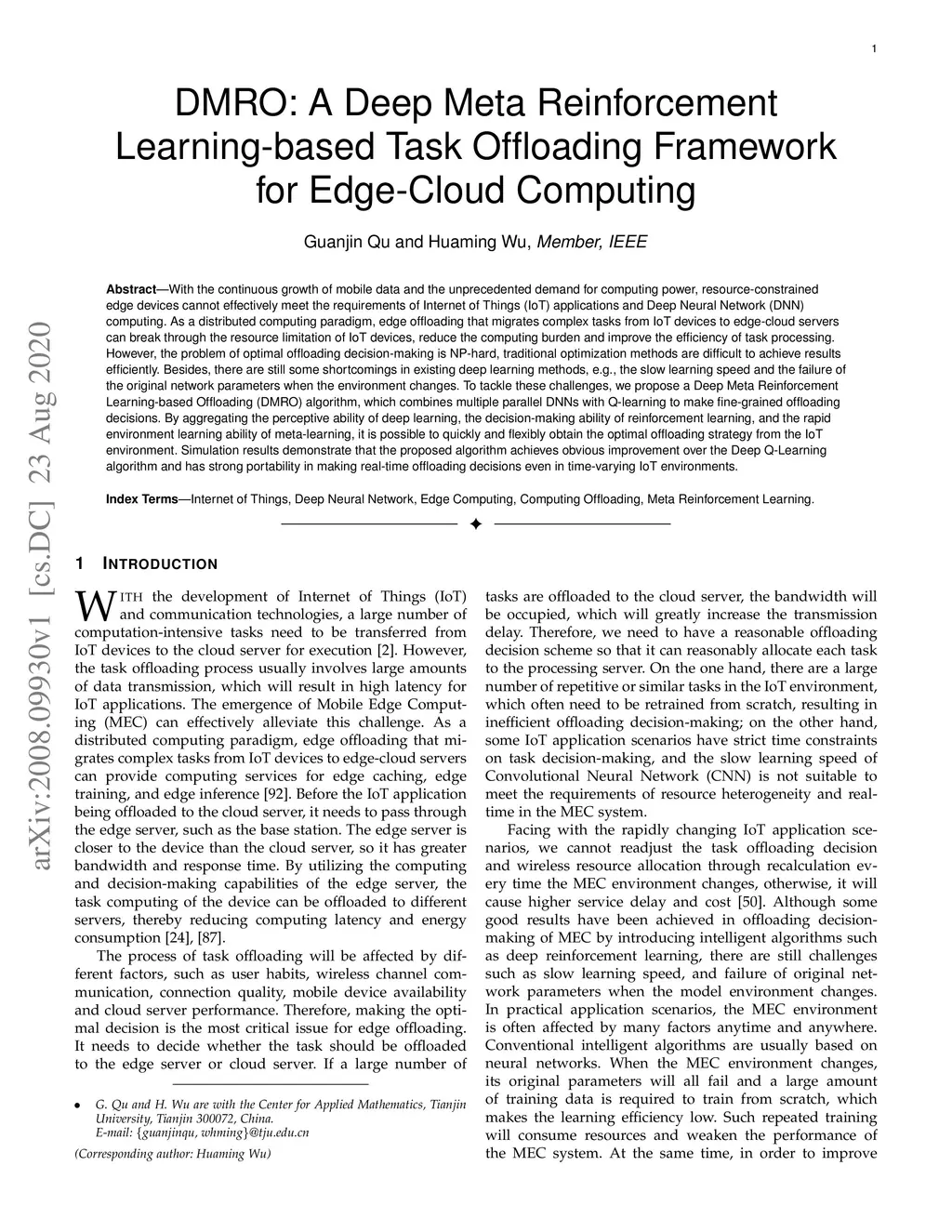 DMRO:A Deep Meta Reinforcement Learning-based Task Offloading Framework