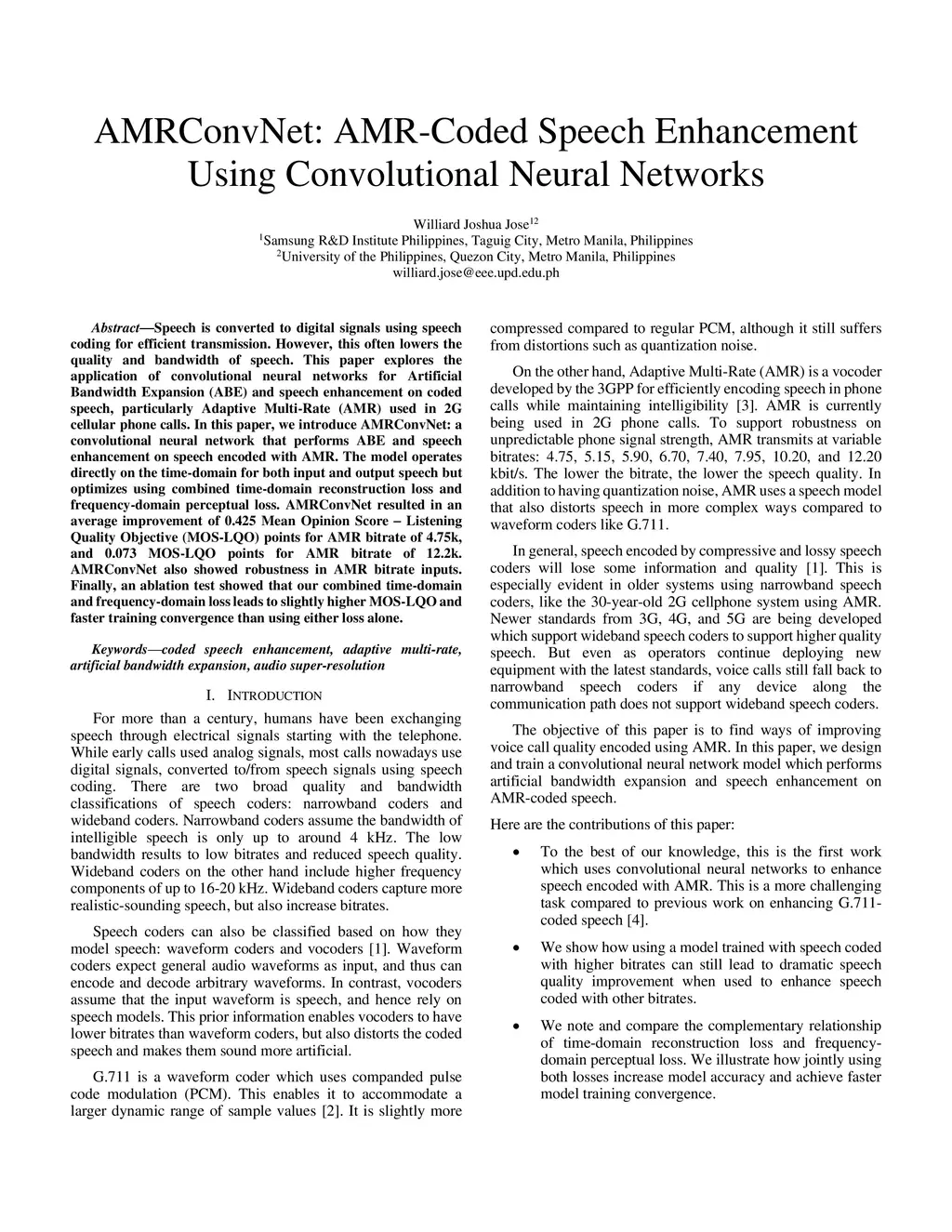 AMRConvNet: AMR-Coded Speech Enhancement Using Convolutional Neural