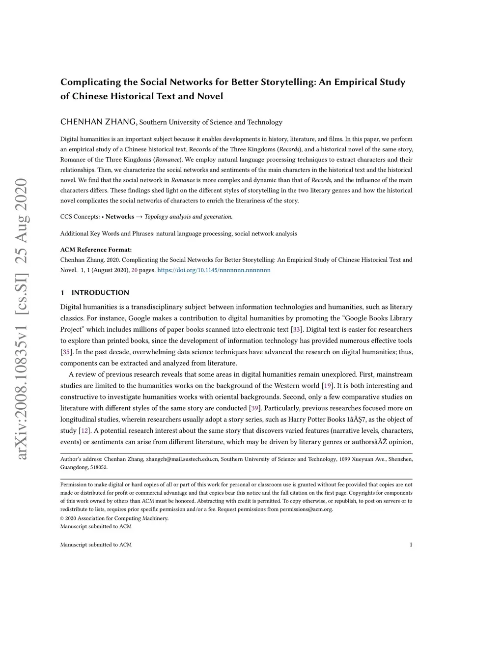 Study of Chinese Historical Text and Novel