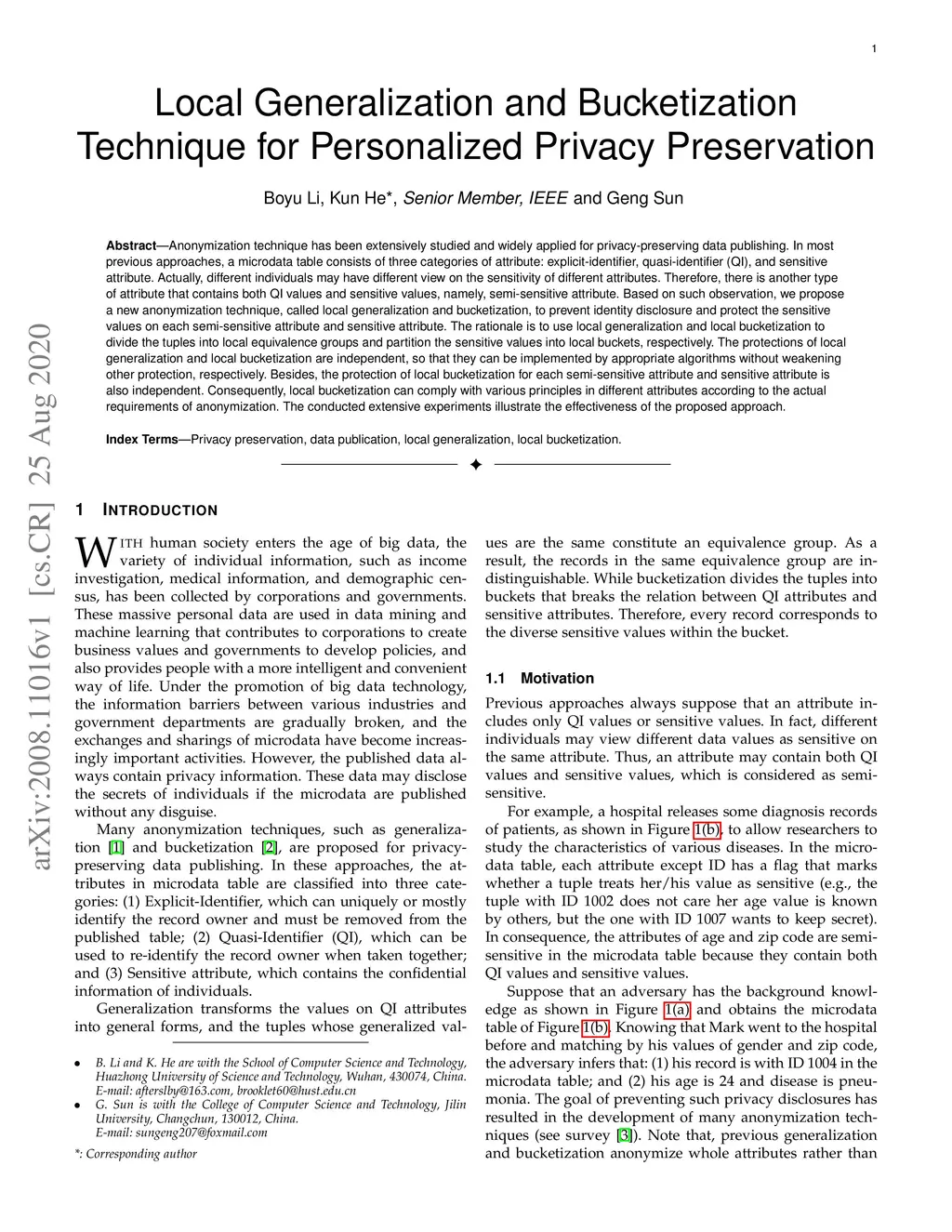 Local Generalization and Bucketization Technique for Personalized