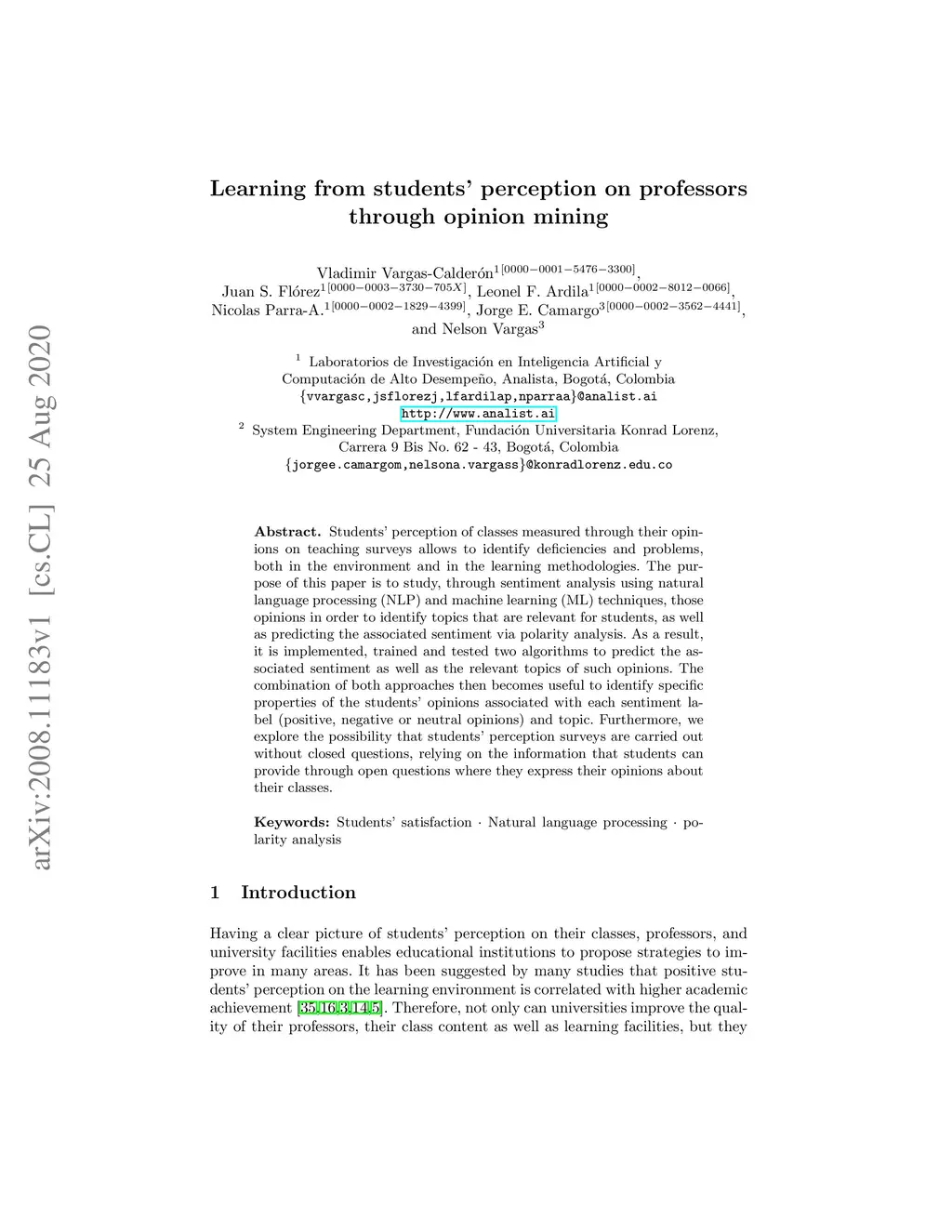 Learning from students' perception on professors through opinion mining