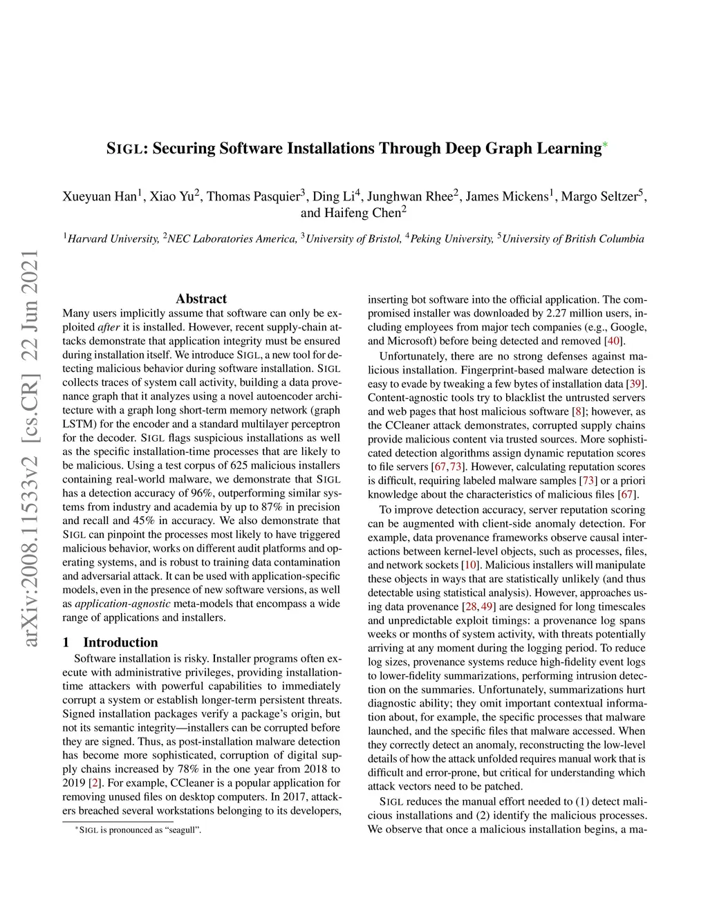 SIGL: Securing Software Installations Through Deep Graph Learning